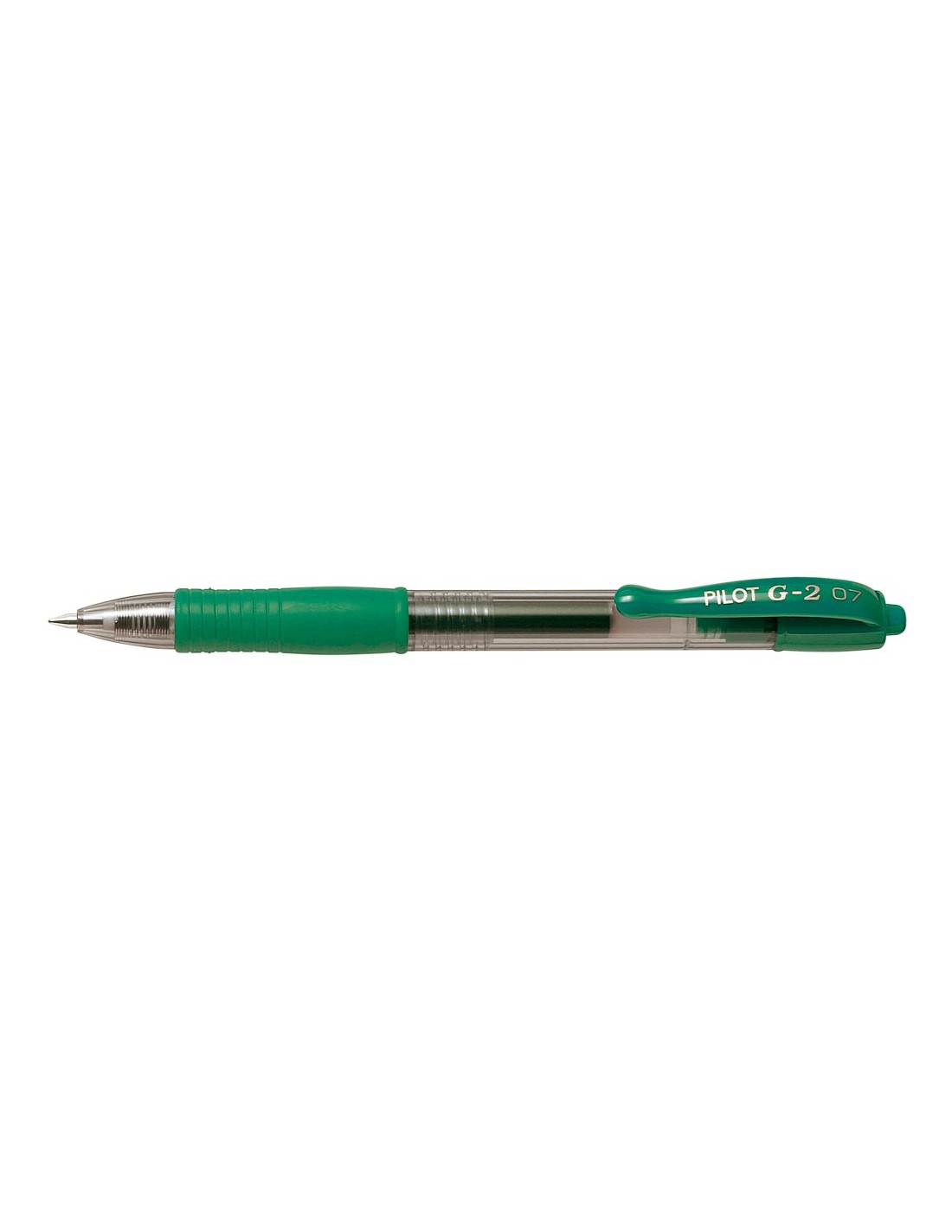 Bolígrafo retráctil con tinta gel. Con sujeción de caucho y clip del color de la tinta. Grip de caucho en la parte inferior. Punta de 0,7 mm. Trazo de 0,4 mm. Recargable. Fabricado con al menos un 70% de plástico reciclado