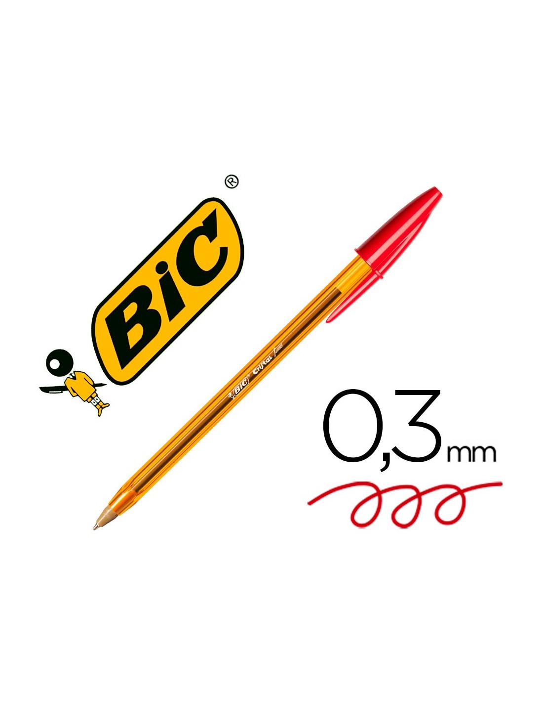 Cuerpo translúcido y capuchón ventilado y punta del color de la tinta. Escritura fina para obtener un texto más nítido. Tinta a base de aceite. Capuchón del color de la tinta. Certificado ecológico NF. Garantiza 3,5 km de escritura. Punta exclusiva Bic de 0,8 mm. Trazo de 0,3 mm.