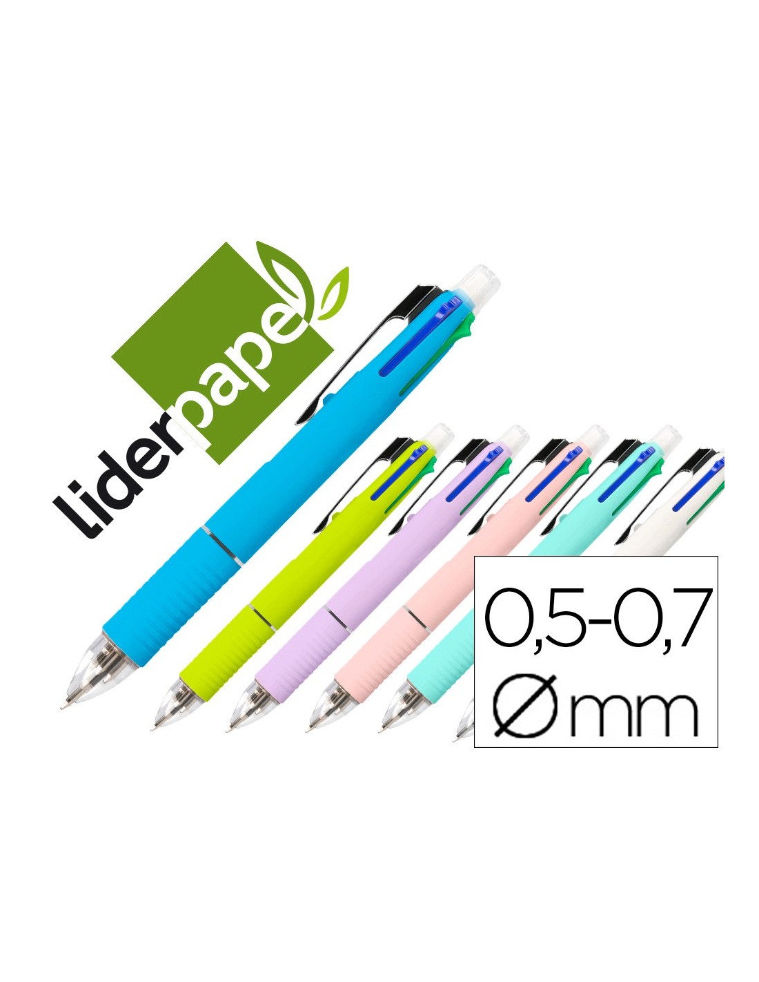 BOLIGRAFO LIDERPAPEL 5 EN 1 AZ. NG. ROJO VERDE 0,7M PORTAMINAS 0,5MM