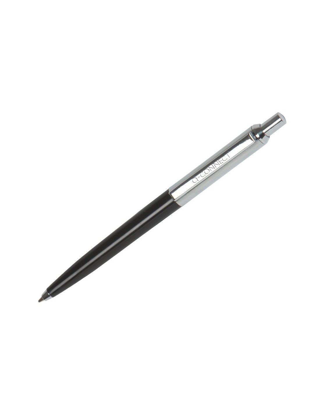 Bolígrafo retráctil metálico con un diseño clásico y elegante. Cuerpo hecho de plástico y de metal de color cromado. Recargable y compatible con los recambios tipo Parker. Escritura suave. Tinta a base de aceite. Punta de 1 mm. Trazo de 0,7 mm. Longitud de escritura: 1000 m.