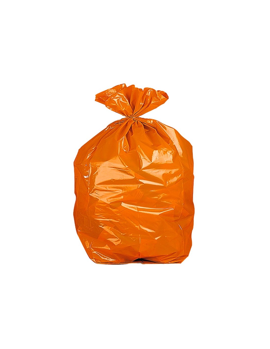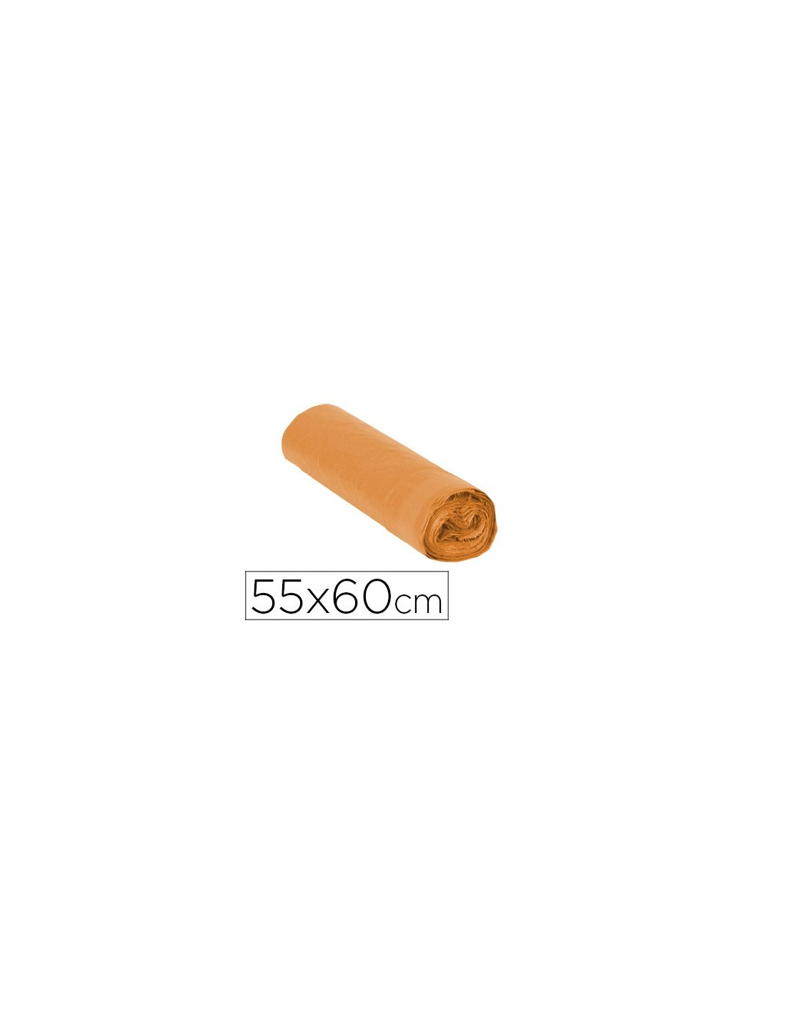 Bolsa de basura doméstica con autocierre color naranja con galga 120. Rollo de 15 bolsas de 55x60 cm con 23 litros de capacidad.
