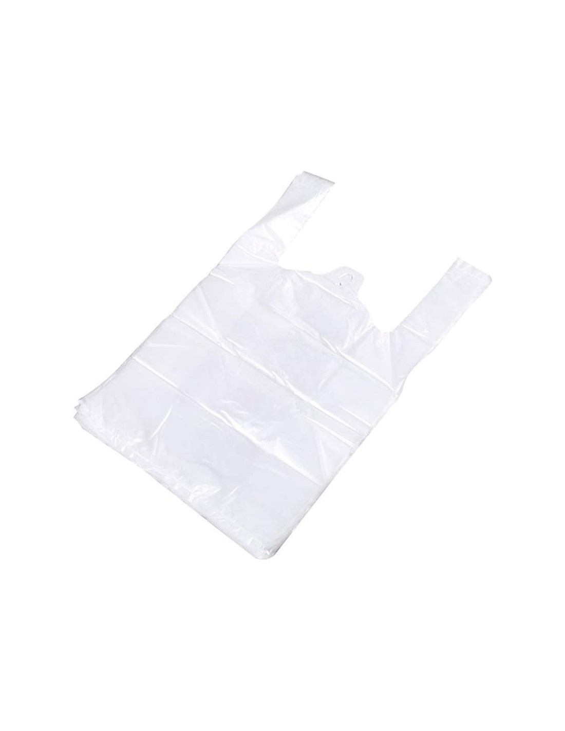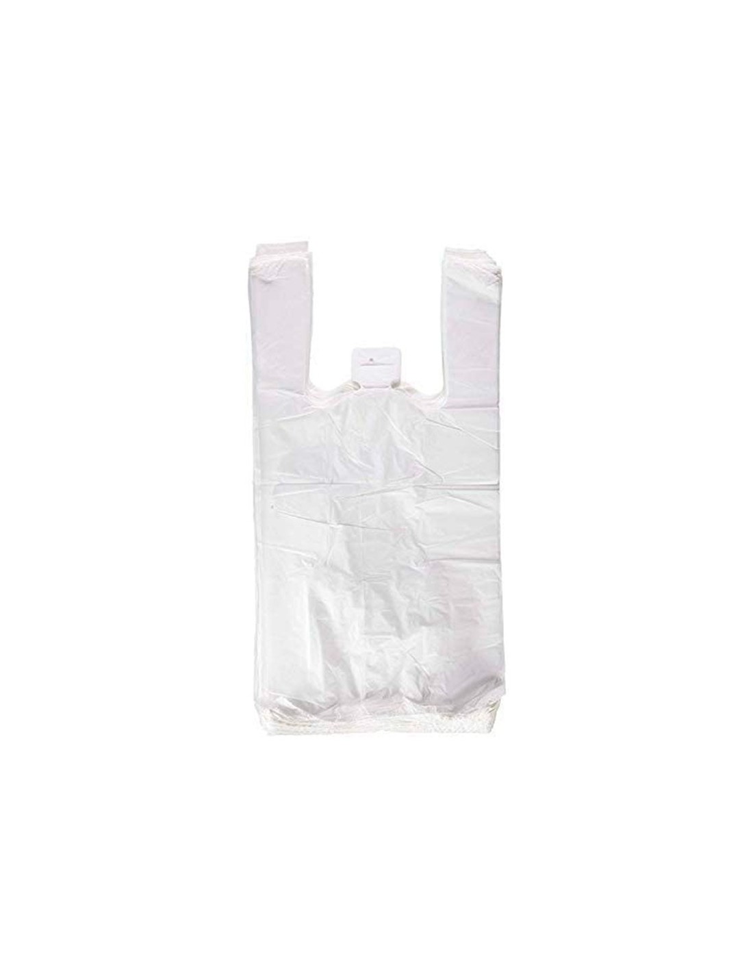 Bolsas camiseta de plástico blanco sin impresión con un 70% de material reciclado aptas para legislación de bolsas 2022.