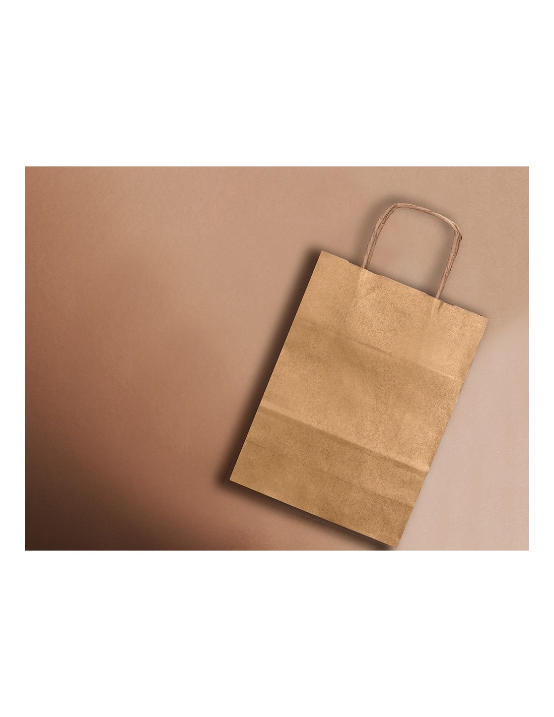 Bolsas fabricadas en papel kraft resistente. Ideales para el transporte de productos o para guardar paquetes de regalo. Con 2 asas retorcidas para una mayor comodidad. Disponible en diferentes colores y medidas.