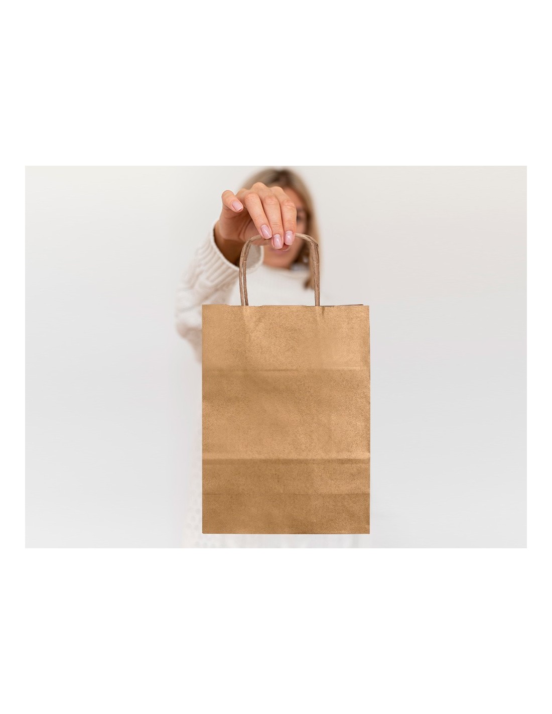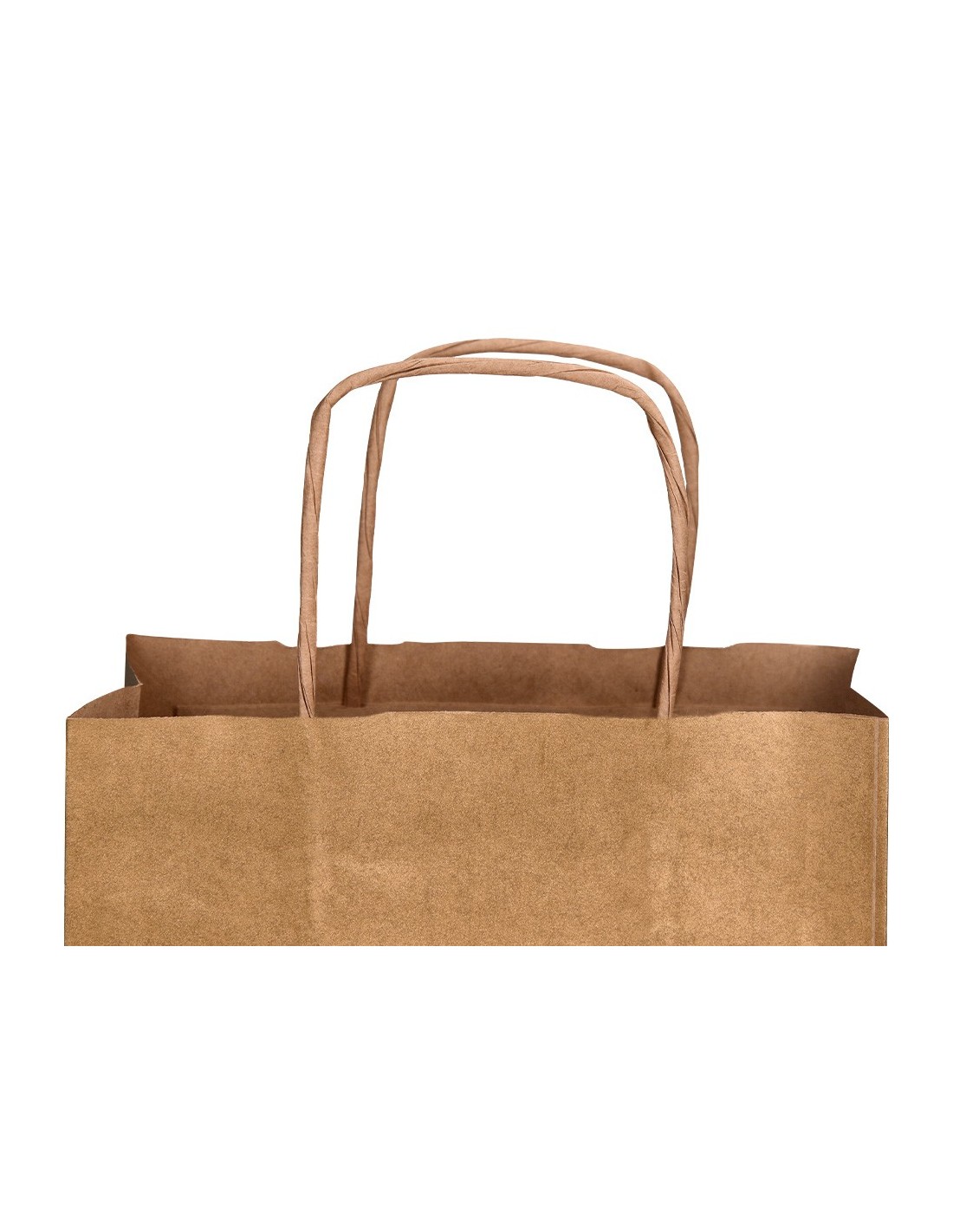 Bolsas fabricadas en papel kraft resistente. Ideales para el transporte de productos o para guardar paquetes de regalo. Con 2 asas retorcidas para una mayor comodidad. Disponible en diferentes colores y medidas.