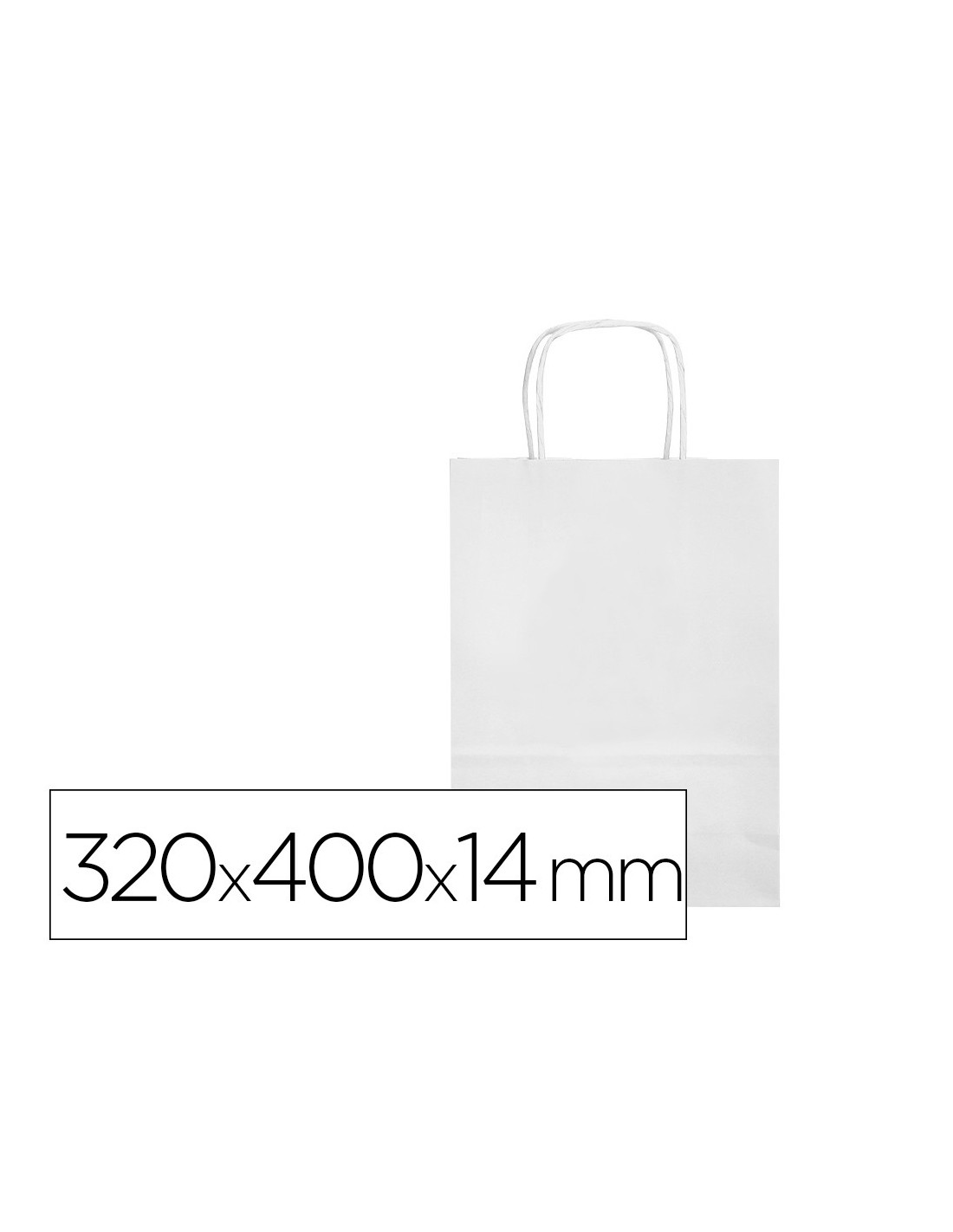 Bolsa de papel con asa retorcida celulosa blanco \"L\" 320x140x400 mm. Paquete de 25 unidades.