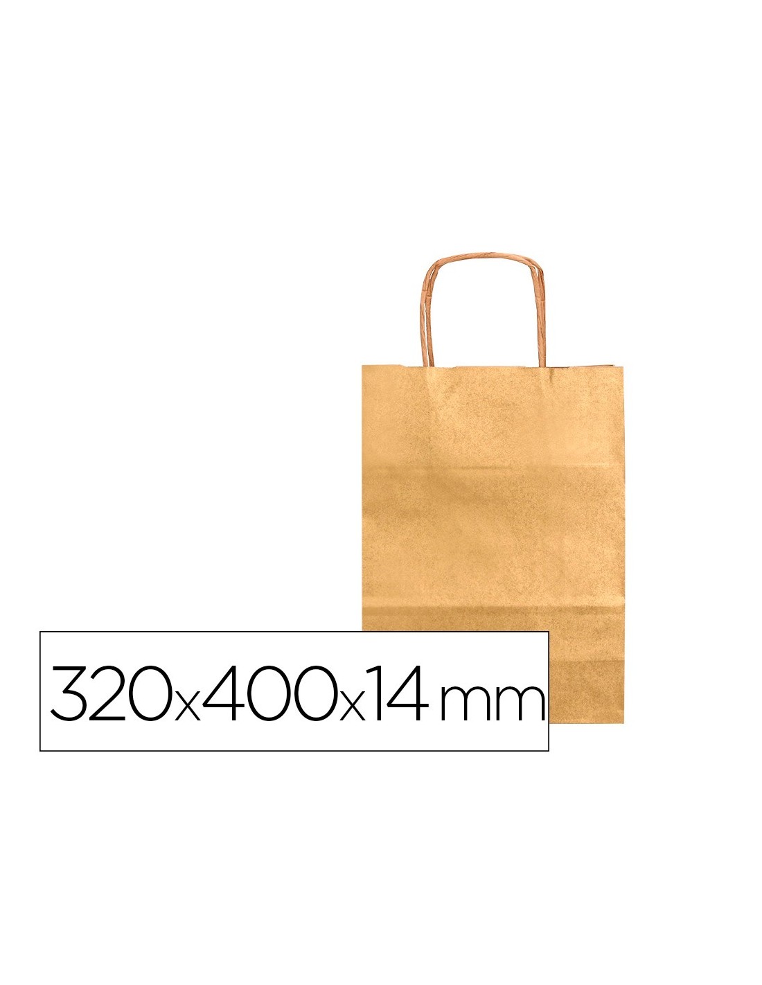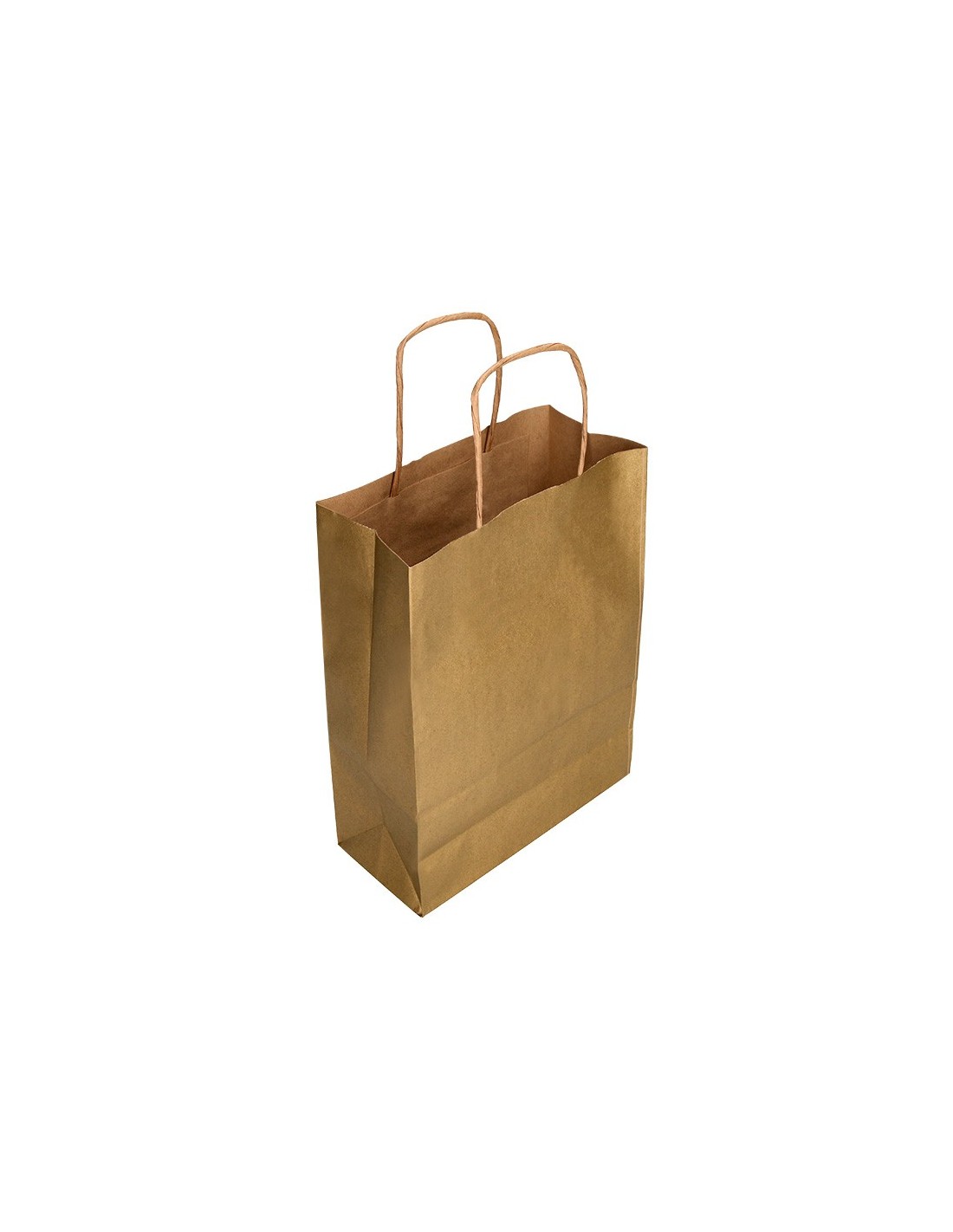 Bolsa de papel con asa retorcida kraft oro \"L\" 320x140x400 mm. Paquete de 25 unidades.