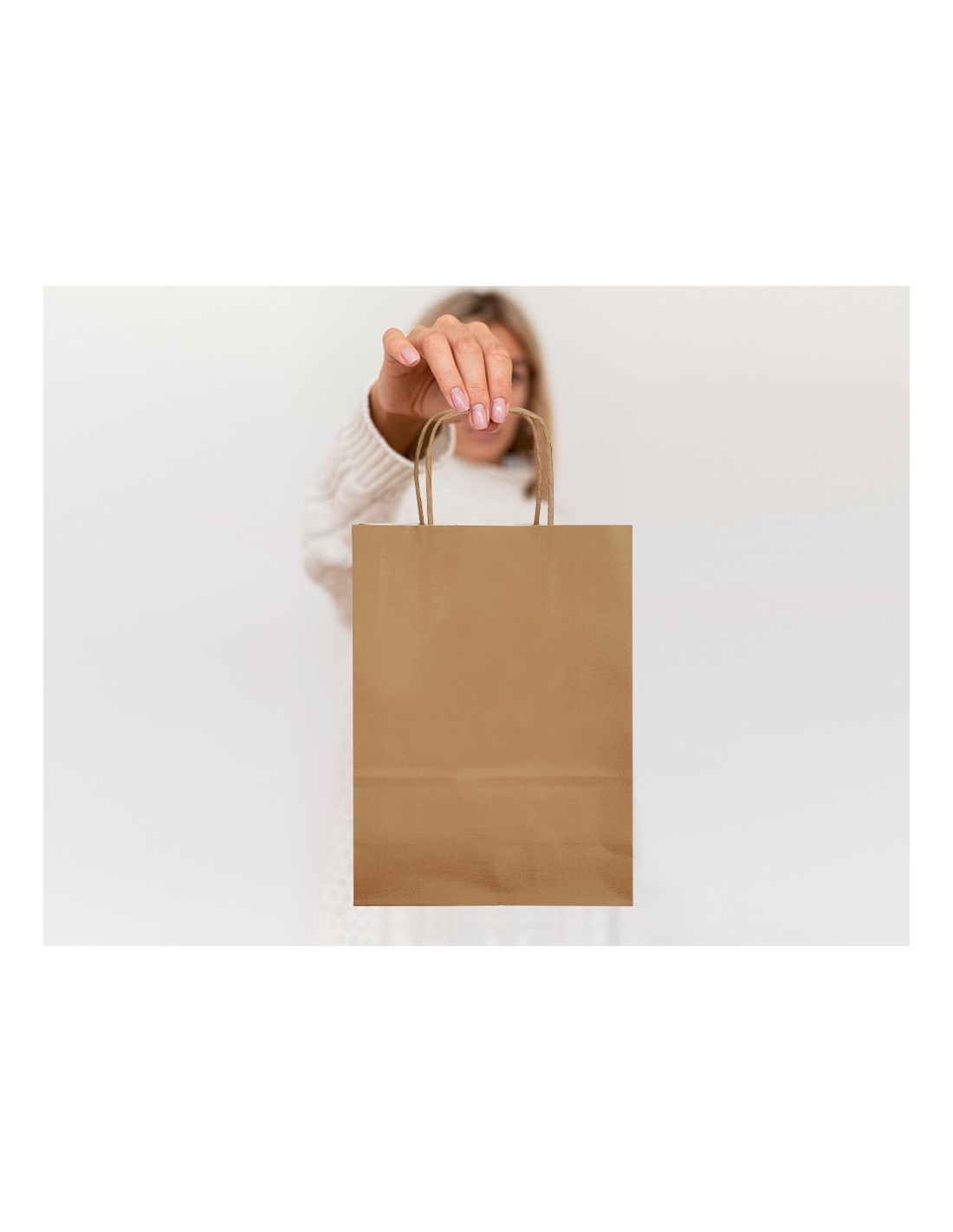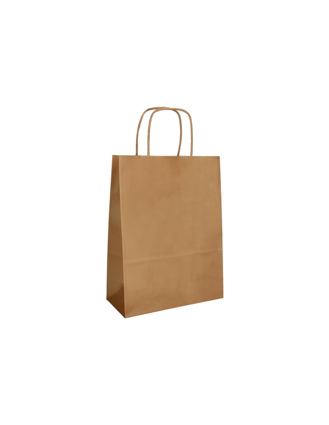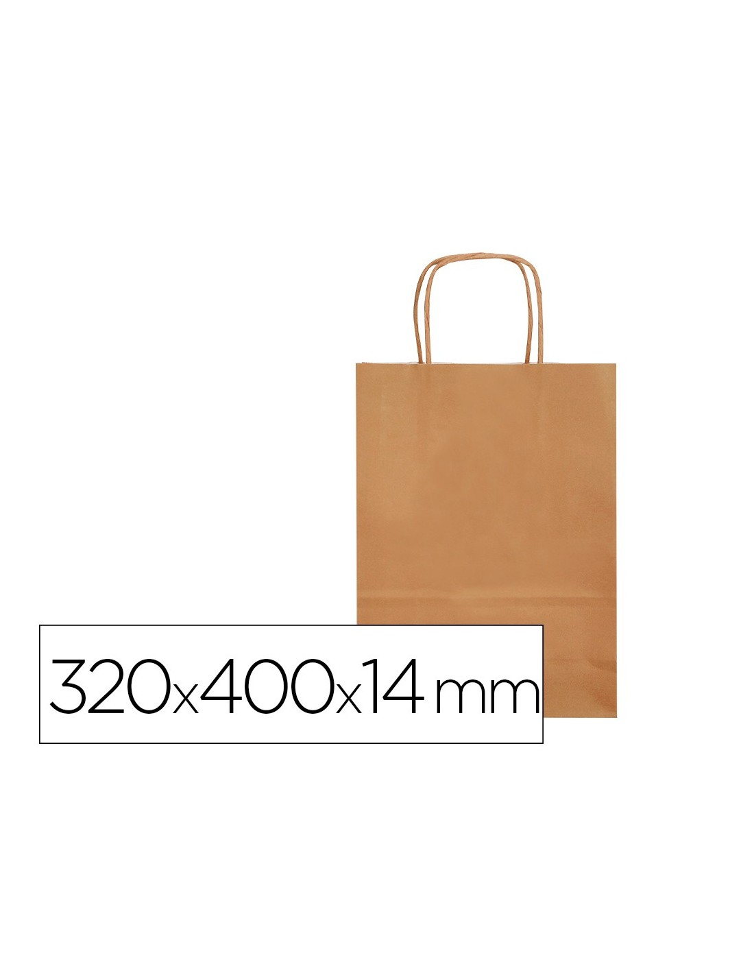 Bolsa de papel con asa retorcida kraft liso \"L\" 320x140x400 mm. Paquete de25 unidades.