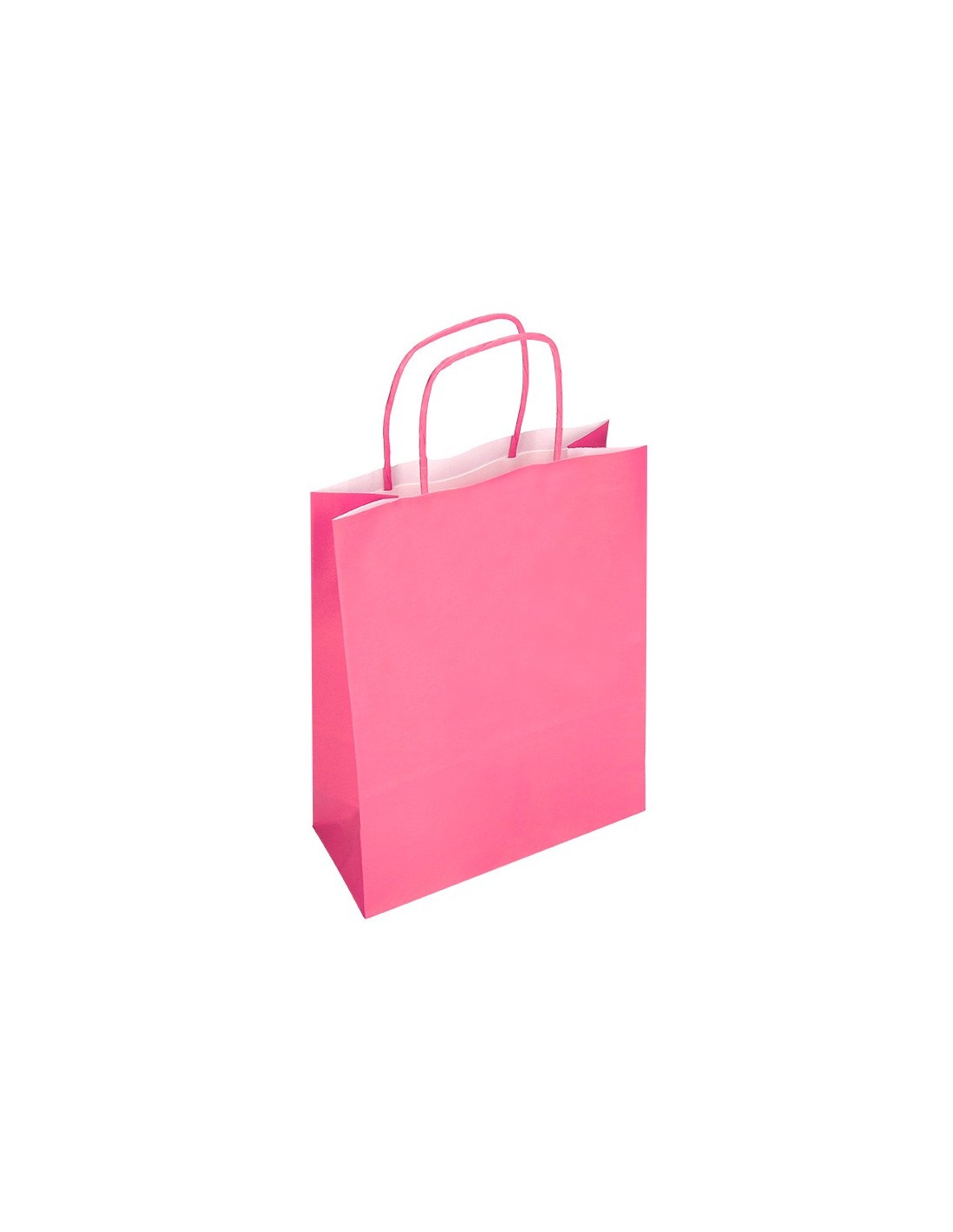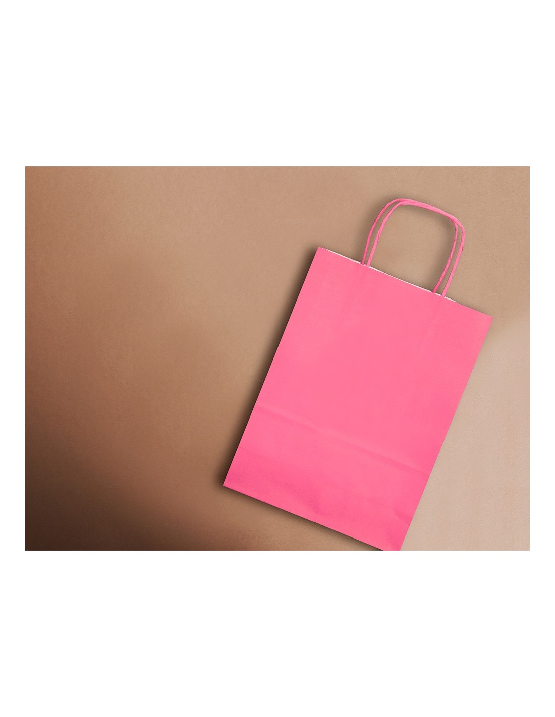 Bolsa de papel con asa retorcida celulosa \"M\" rosa 270x120x370 mm.Paquete de 25 unidades.
