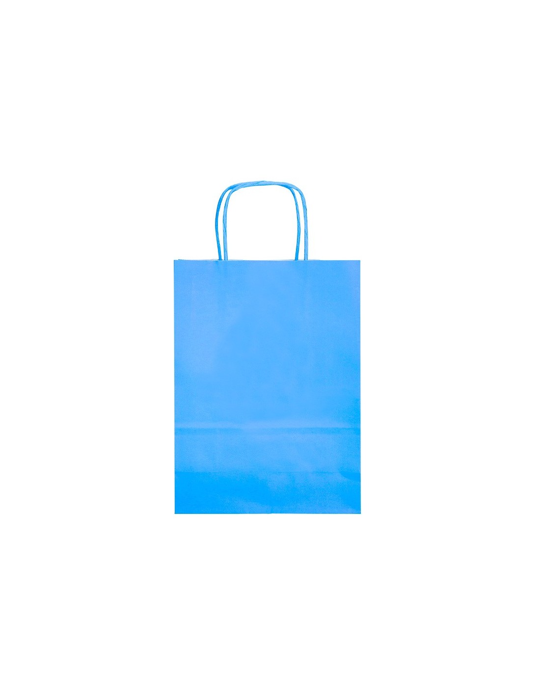 Bolsa de papel con asa retorcida celulosa celeste \"M\" 270x120x370 mm.Paquete de 25 unidades.
