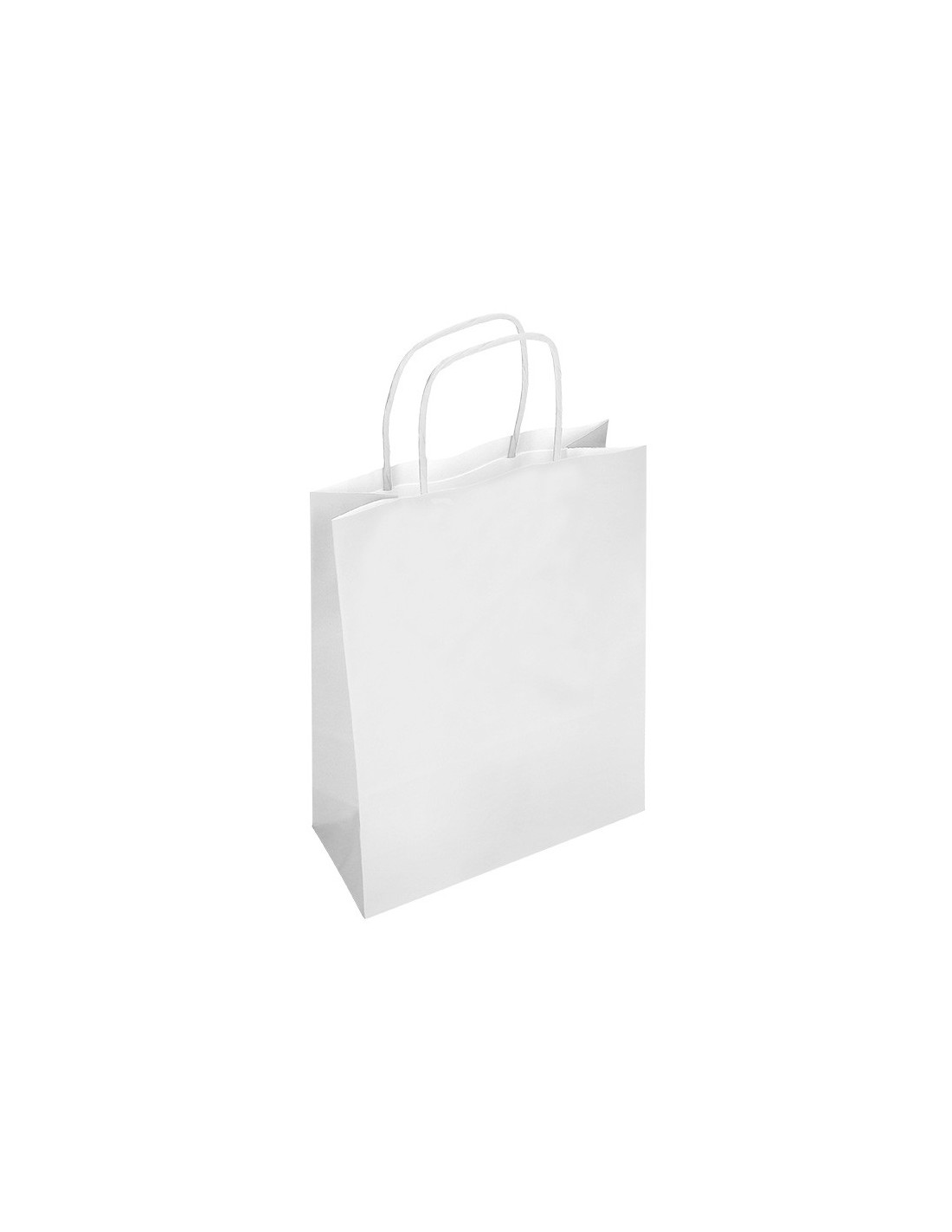 Bolsa de papel con asa retorcida celulosa blanco \"M\" 270x120x370 mm.Paquete de 25 unidades.