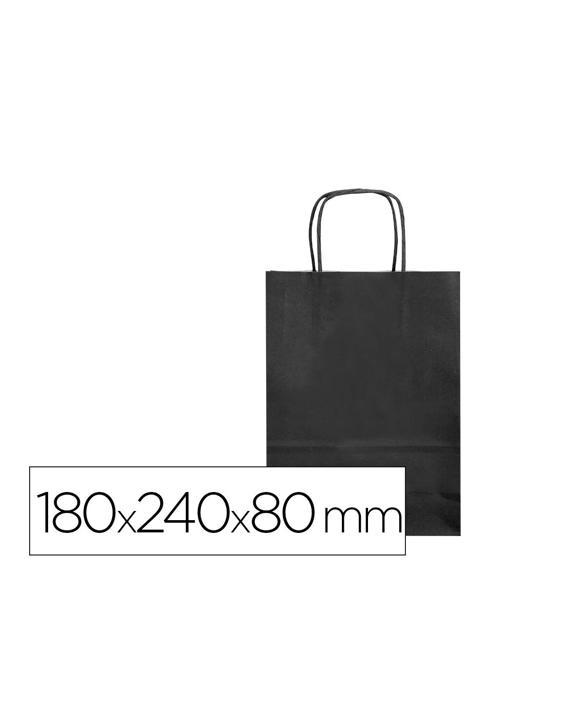 Bolsa de papel con asa retorcida celulosa negro \"XS\" 180x80x240 mm. Paquete de 25 unidades.