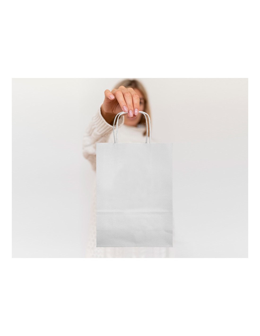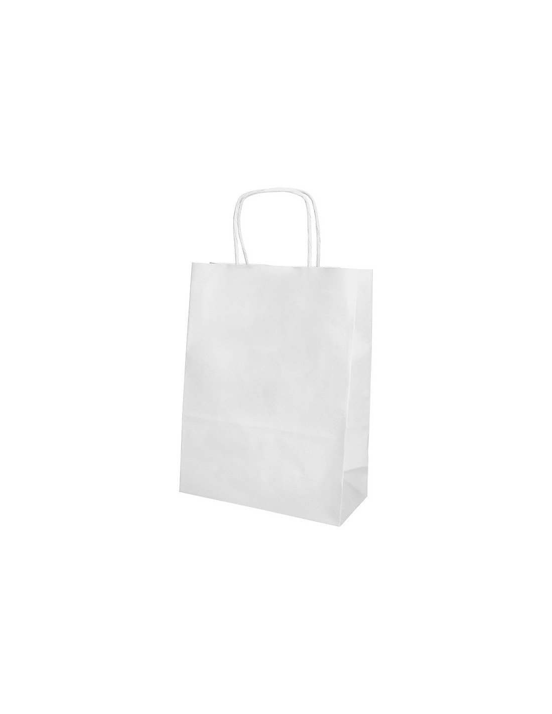 Bolsa de papel con asa retorcida celulosa blanco \"XS\" 180x80x240 mm. Paquete de 25 unidades.