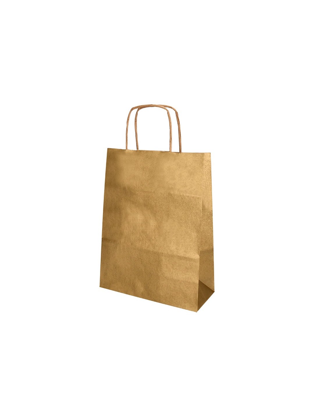 Bolsa de papel con asa retorcida kraft oro \"XS\" 180x80x240 mm. Paquete de 25 unidades.