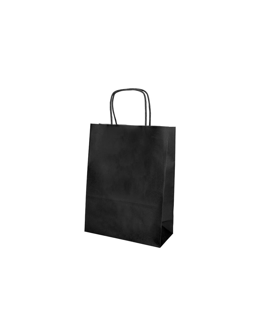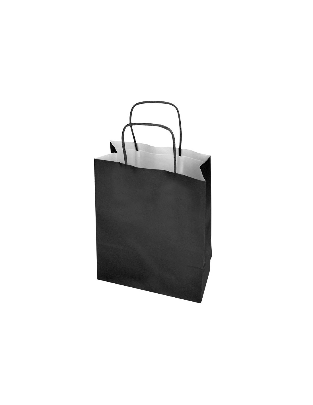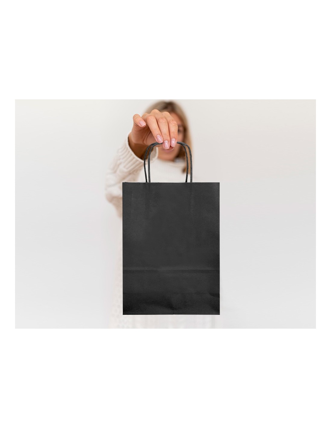 Bolsa de papel con asa retorcida celulosa negro \"S\" 240x100x320 mm. Paquete de 25 unidades.