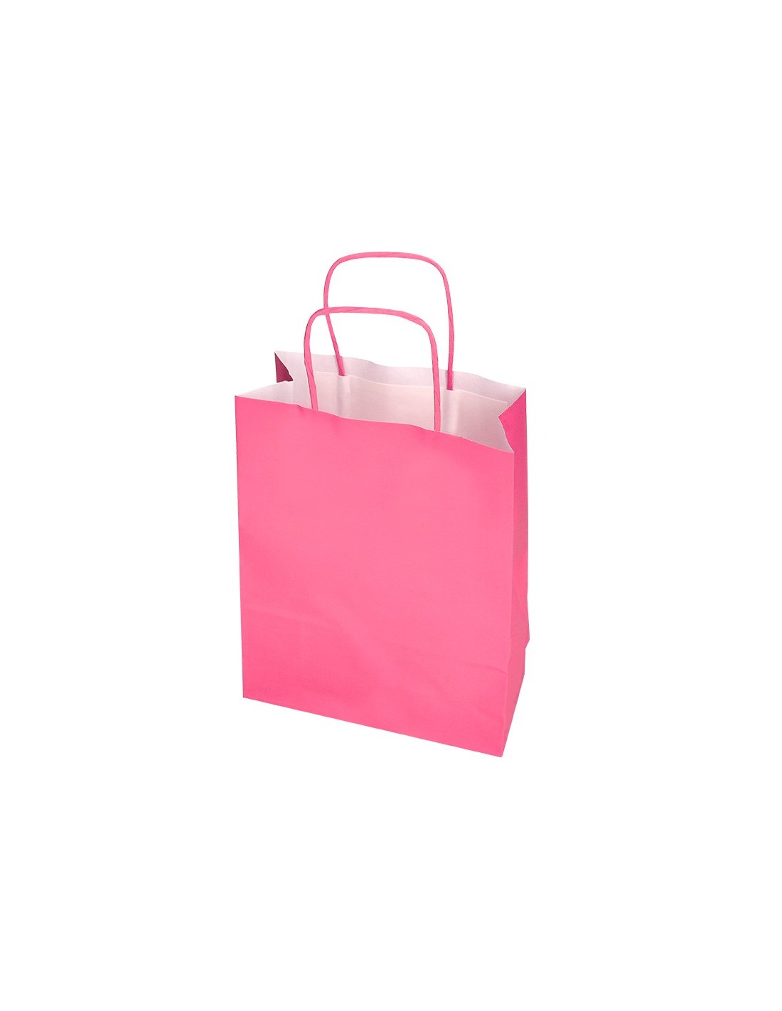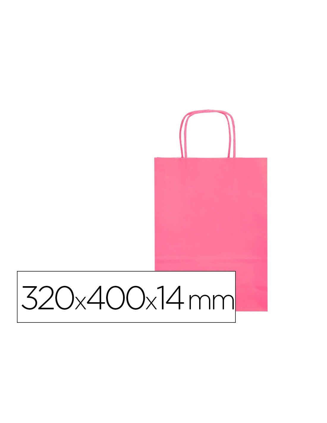 Bolsa de papel con asa retorcida celulosa rosa \"L\" 320x140x400 mm. Paquetede 25 unidades.
