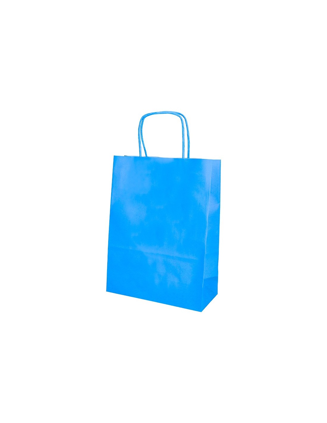Bolsa de papel con asa retorcida celulosa celeste \"L\" 320x140x400 mm. Paquete de 25 unidades.