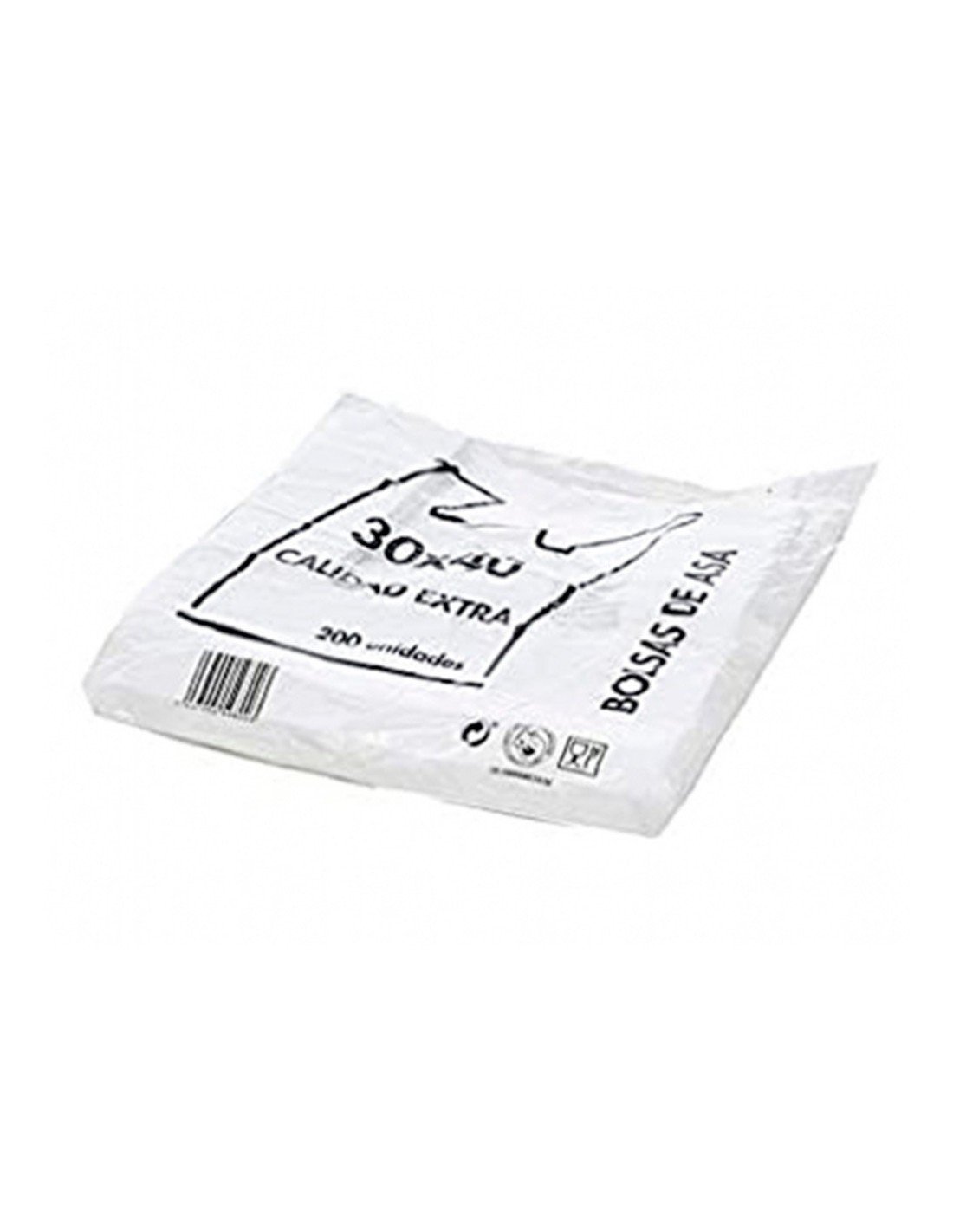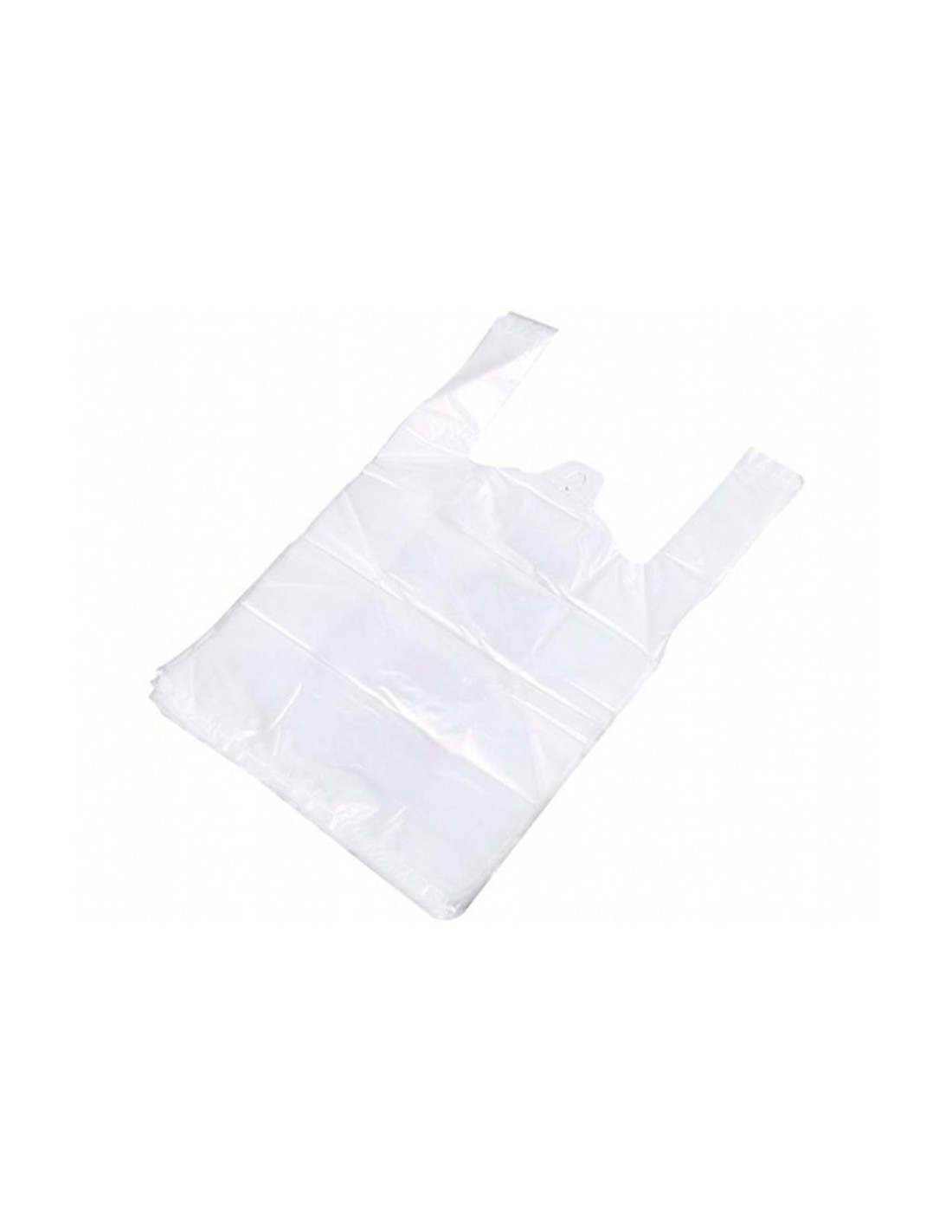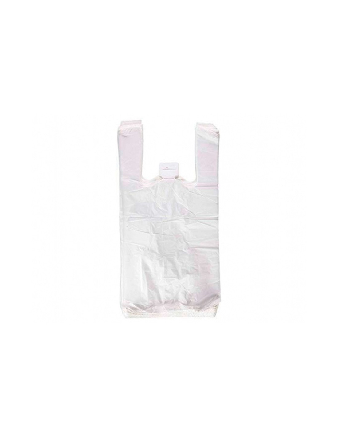 Bolsas camiseta de plástico blanco sin impresión con un 70% de material reciclado aptas para legislación de bolsas 2022. Medidas: 35x50 cm.