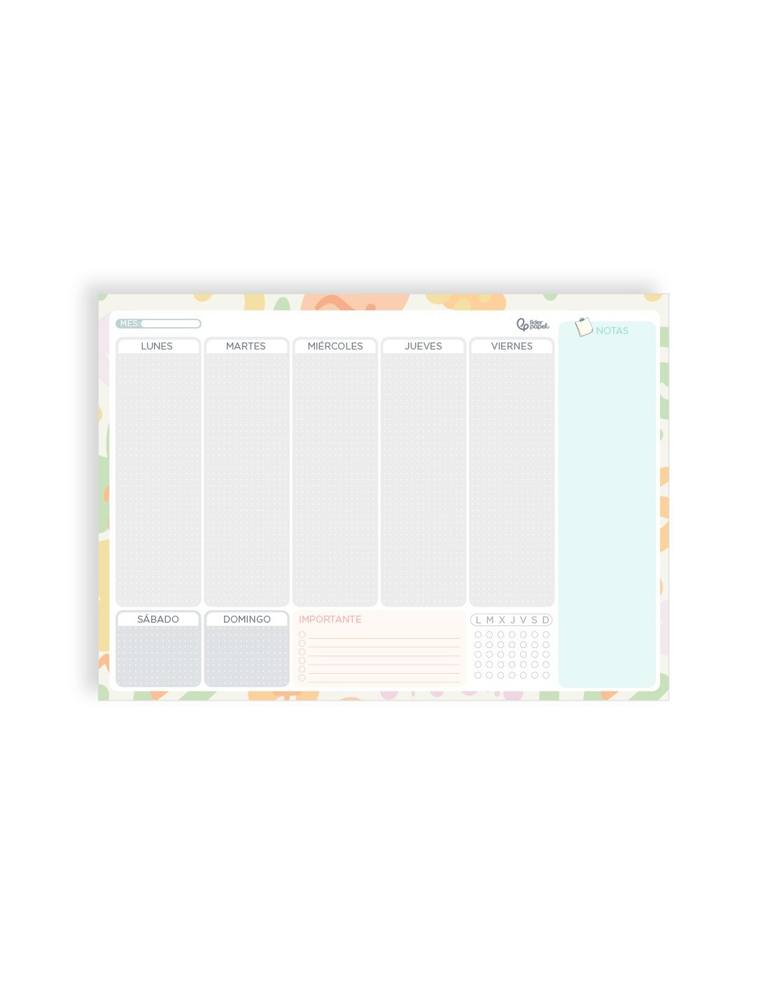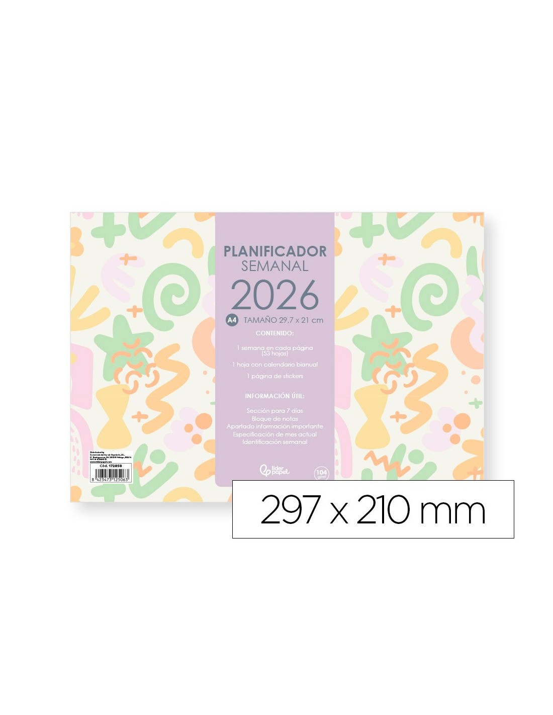 Este año, manten todo bajo control con el planning semanal de Pared 2026 de Liderpapel. Especialmente diseñado para quienes quieren darle un toque fresco y moderno a su espacio, sin perder la funcionalidad. Este planning semanal es la herramienta perfecta para organizar tus semanas de manera eficiente y con estilo. Su formato de lomo engomado asegura durabilidad y facilidad de uso. Además, su tamaño compacto lo hace ideal para cualquier espacio. Fabricado con materiales de alta calidad. No dejes que ningún eventoo cita te sorprenda. Saca el máximo provecho del 2026 con el planning sem anal de Pared de Liderpapel. Características: planning semanal, Liderpapel, joven, 2026, papel 104 g/m² 297x210 mm, lomo engomado, con pegatinas.