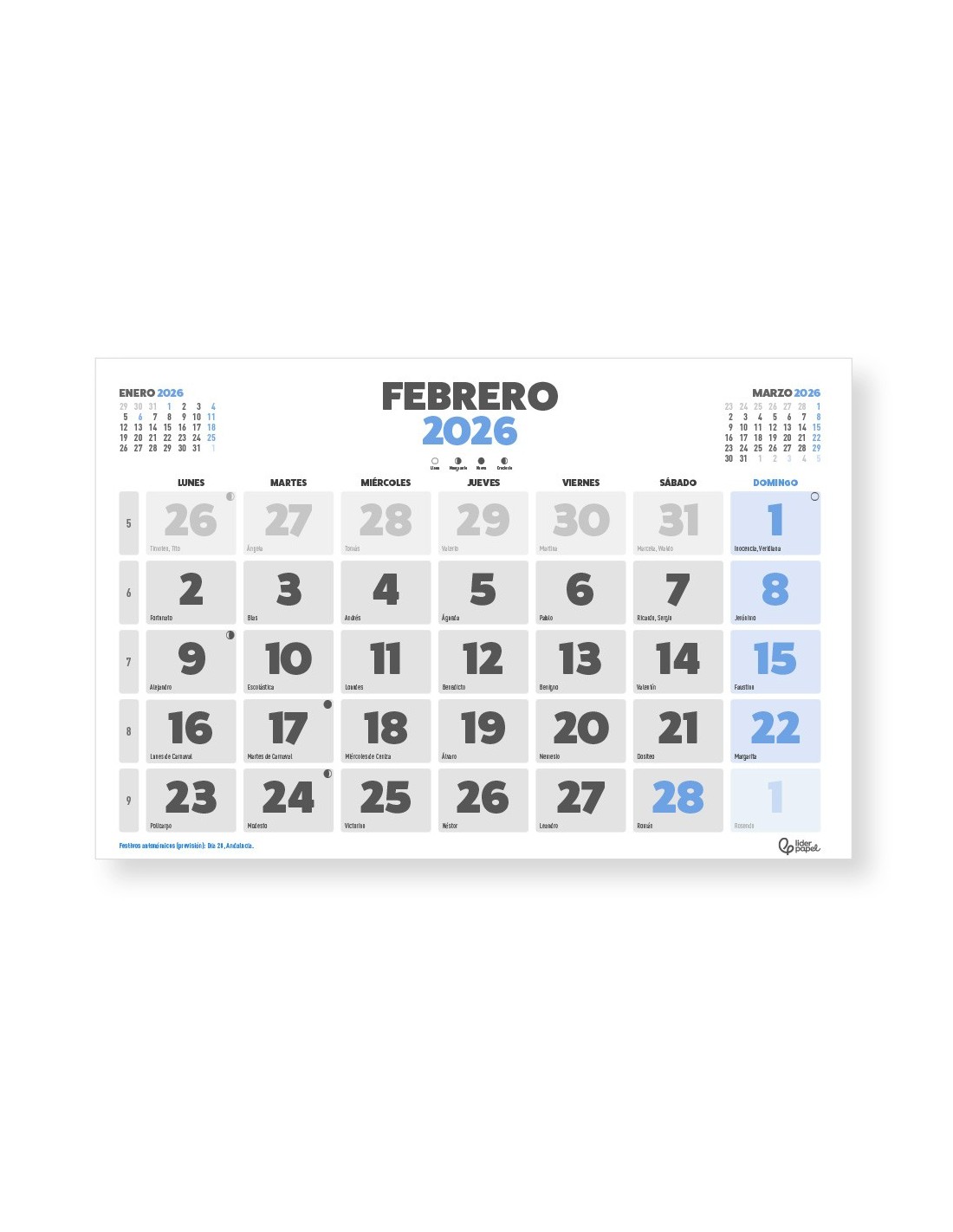 CALENDARIO PARED CLASICO 2026 LOMO ENGOMADO 60X40 CM PAPEL 105 GR