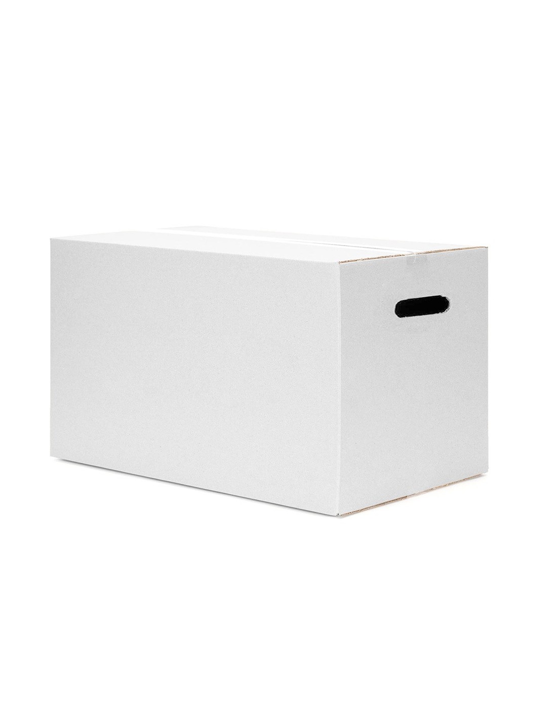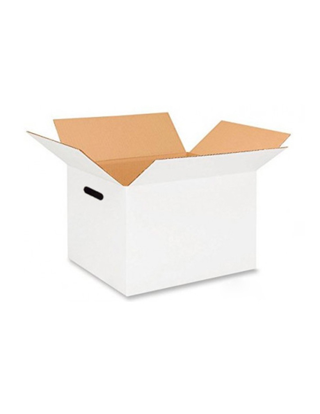 Caja para embalar y mudanzas americana. Caja ultrarresistente con doble canal para envíos pesados. Con asas en los laterales para que puedas moverlas de forma cómoda y sin riesgo de corte. Ideal tanto para embalaje y mudanzas como para envíos e-commerce y online de todo tipo de productos. También para almacenar gracias a que se pueden apilar una encima de otra. Plegable de cuatro caras laterales y base rectangular que se cierra tanto en su parte inferior como en su parte superior por medio de 4 solapas. Las solapas más largas cierran al centro, sin dejar espacio para que se escape el contenido. Fabricada en cartón 100% reciclado y reciclable de canal doble de 7 mm de espesor. Esta caja para envíos en color blanco tiene u nas medidas de 450x280x375 mm. Con capacidad para 47 litros.