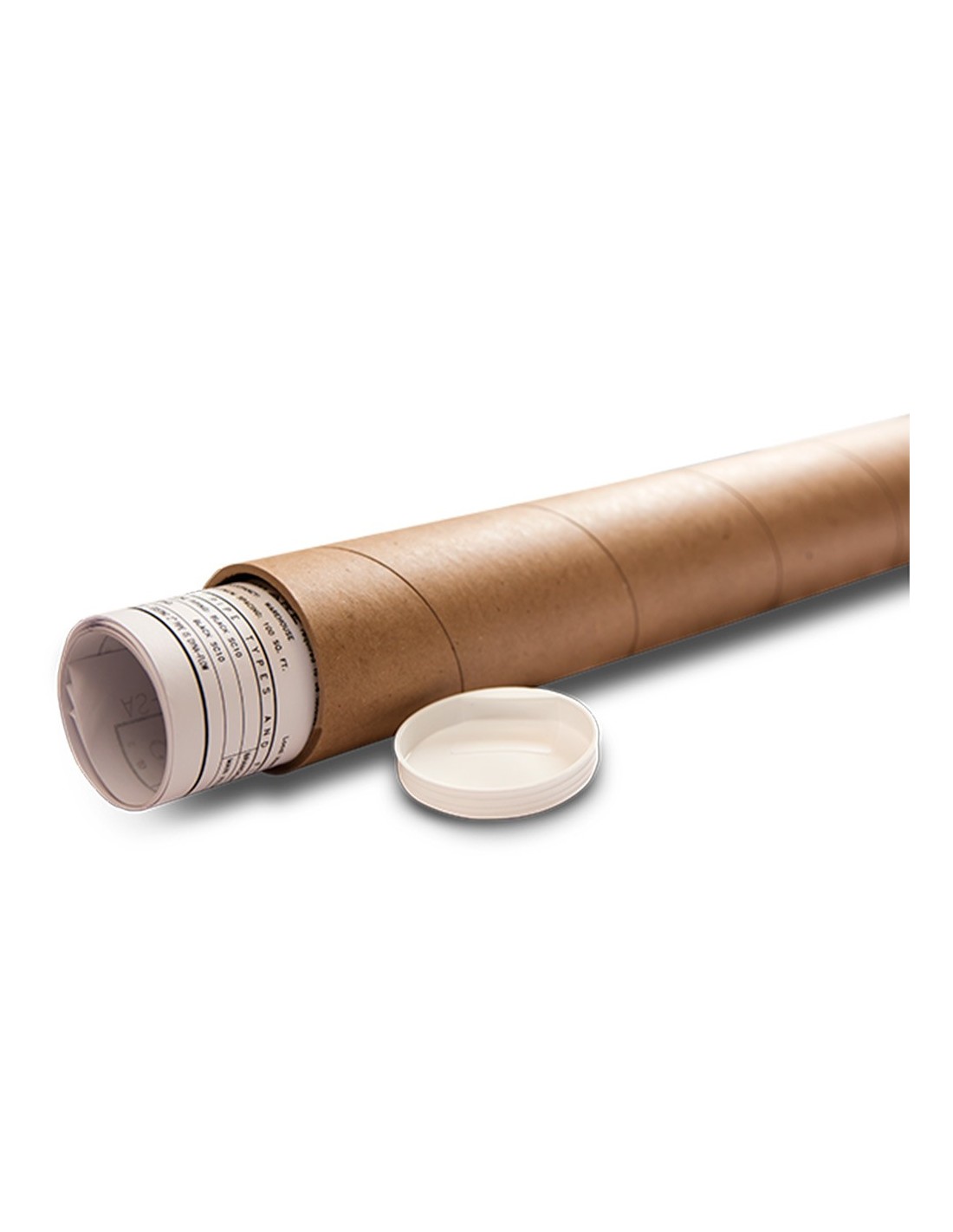 Tubo fabricado en cartoncillo encolado 100% reciclado de 1,8 mm de espesor. Con dos tapas de plástico, una en cada extremo. Alta resistencia. Perfecto para transporte, almacenaje y protección de documentos de gran formato.