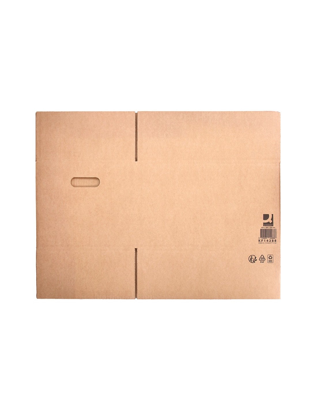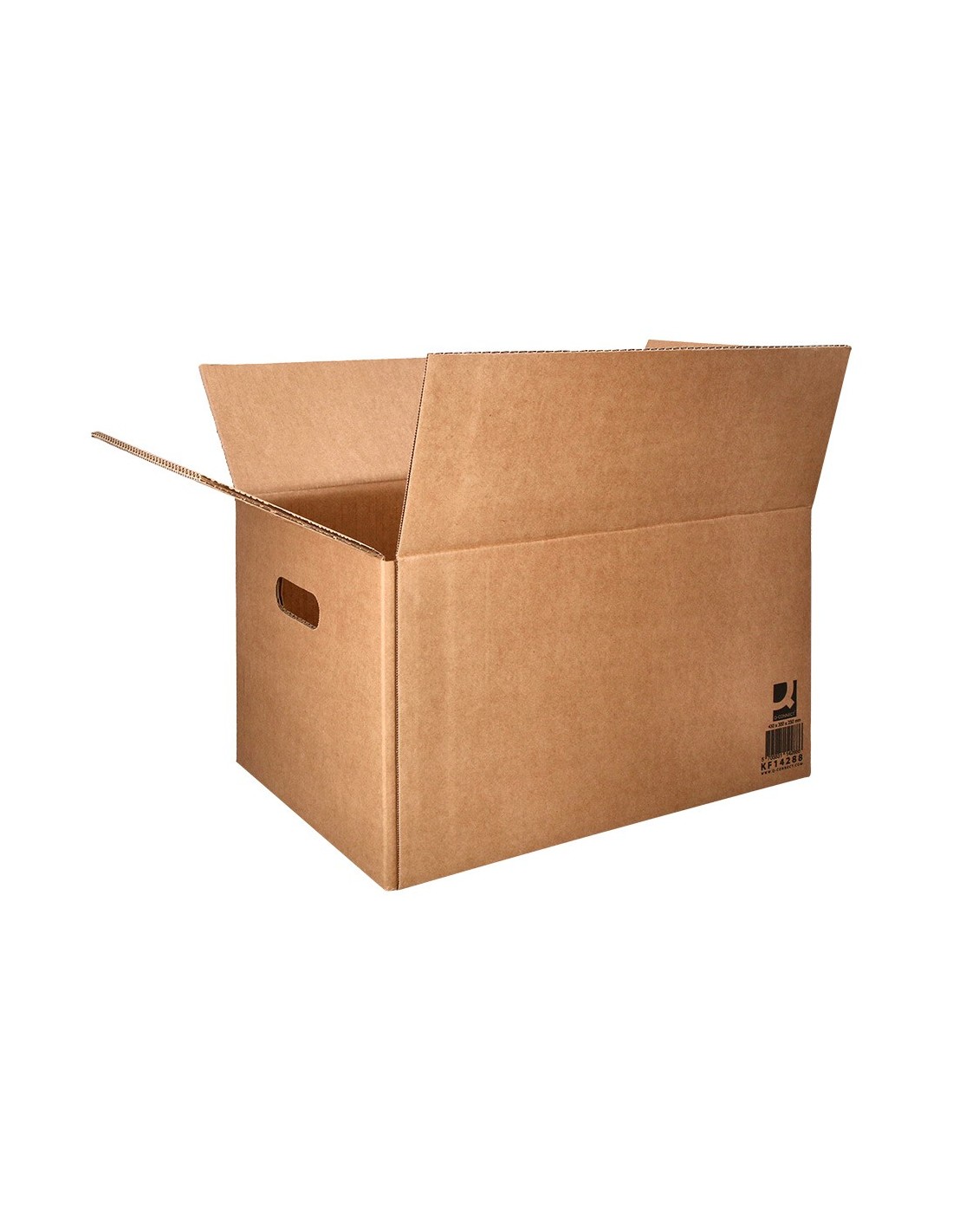 Caja para embalar y mudanzas americana. Caja ultrarresistente con doble canal para envíos pesados. Con asas en los laterales para que puedas moverlas de forma cómoda y sin riesgo de corte. Ideal tanto para embalaje y mudanzas como para envíos e-commerce y online de todo tipo de productos. También para almacenar gracias a que se pueden apilar una encima de otra. Plegable de cuatro caras laterales y base rectangular que se cierra tanto en su parte inferior como en su parte superior por medio de 4 solapas. Las solapas más largas cierran al centro, sin dejar espacio para que se escape el contenido. Fabricada en cartón 100% reciclado y reciclable de canal doble de 7 mm de espesor. Esta caja para envíos de libros en color kraft tiene unas medidas de 430x300x250 mm. Con capacidad para 32 litros.
