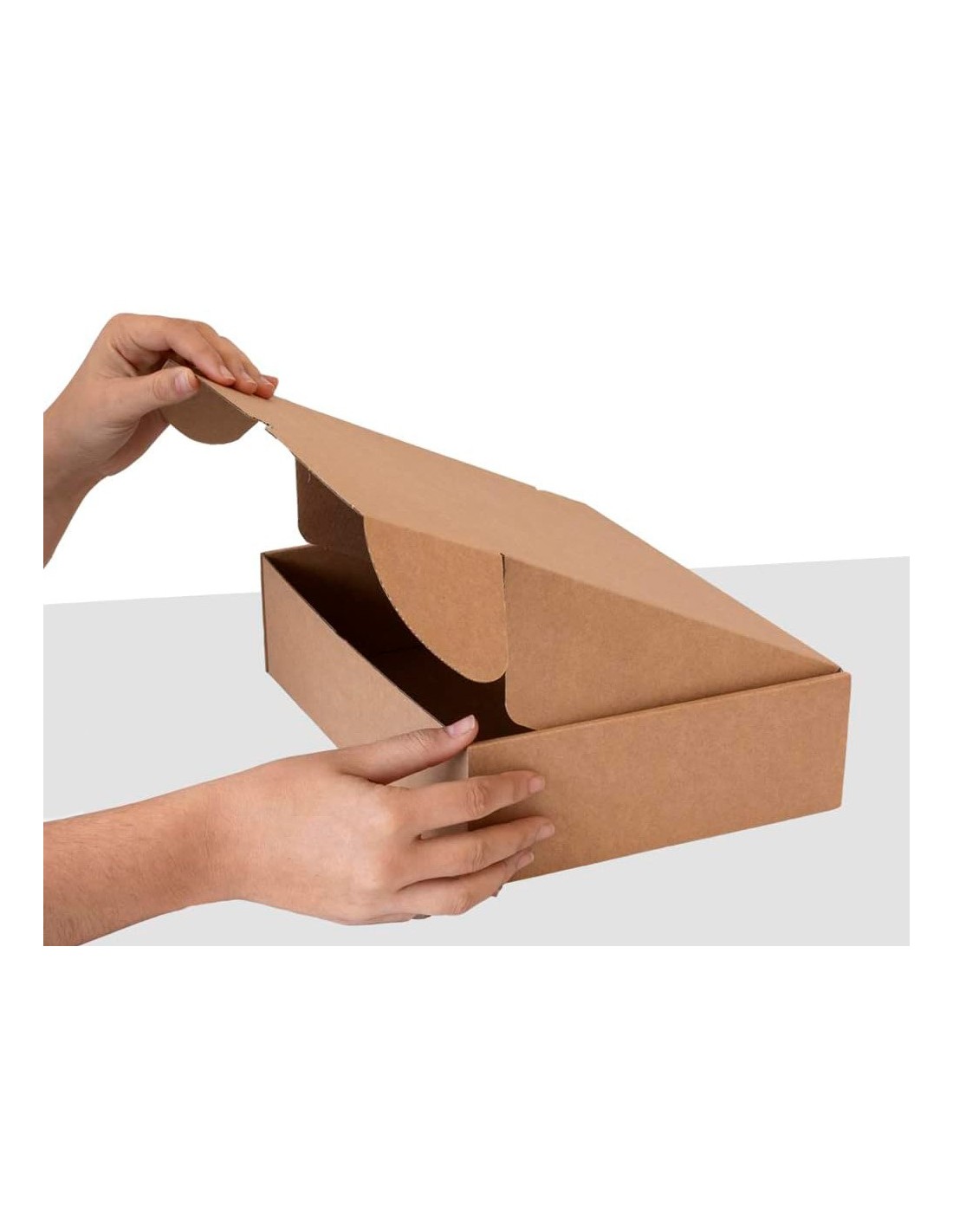 Caja para envíos postales, embalaje y regalo. Fabricada con cartón 100% reciclado y reciclable de canal simple de 3mm de espesor. Con sistema de montaje manual muy rápido y sencillo, sin necesidad de emplear pegamentos, cintas o adhesivos. La caja tiene un código QR que redirigirá a un video conlas instrucciones de montaje. Ideales tanto para almacenamiento y embalaj e como para envíos e-commerce y online de todo tipo de productos. También puede personalizarlse con la ayuda de una cinta adhesiva o de un rotuladory utilizarse para la entrega y envío de regalos. Gracias a sus solapas la terales el cierre es mucho más seguro y ajustado, protegiendo así duranteel transporte los productos que se envíen en su interior. Esta caja para envíos en color kraft tiene unas medidas de 210x180x60 mm. Reutilizable varias veces.