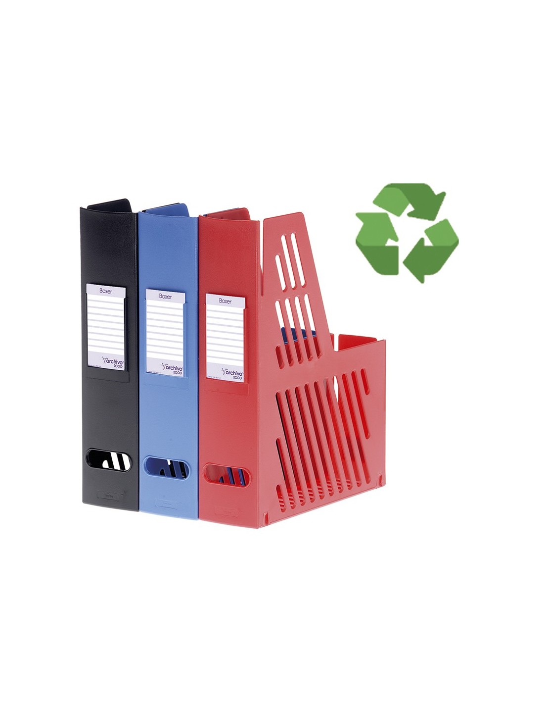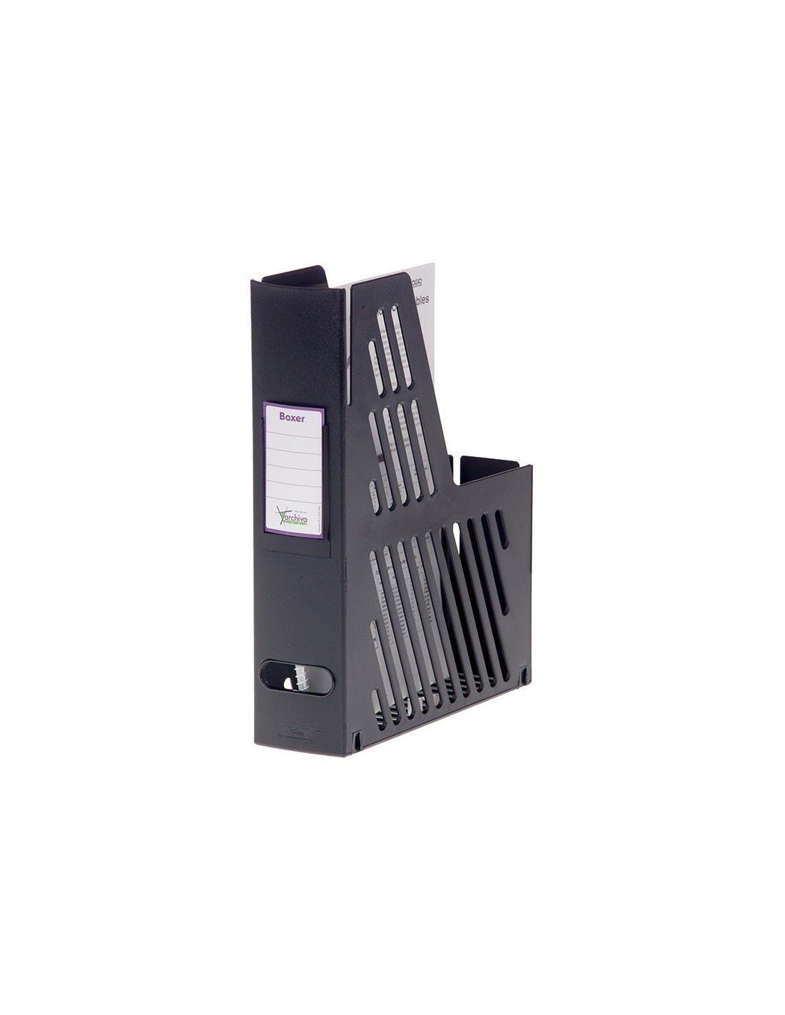 Cajetín de archivo sostenible Archivo 2000 con tarjetero identificador. Fabricado en poliestireno 100% reciclado y reciclable. Lomo ollado de 75 mm. Gran capacidad y estabilidad, permiten mantener la documentación bien organizada y siempre a mano. Formato A4 y folio. Color negro. Medidas exteriores: 240x75x315 mm. Fabricado en España.