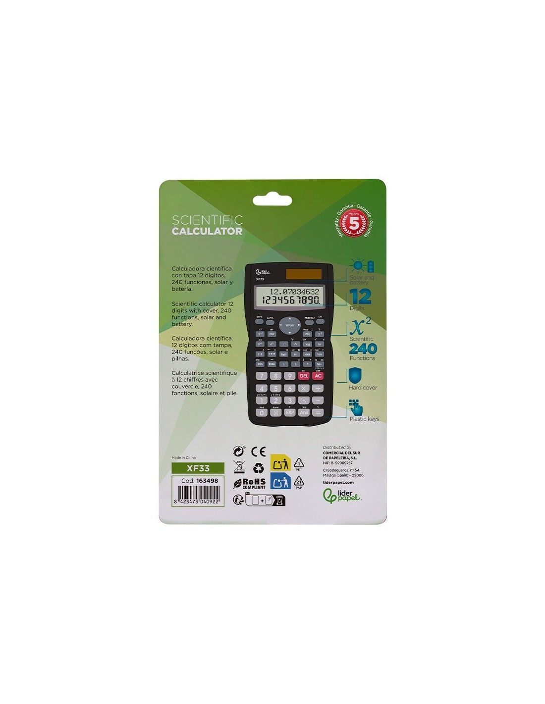 CALCULADORA CIENTIFICA XF33 12D.240 FUNCI T.SOLAR PILAS NG.156X85X20