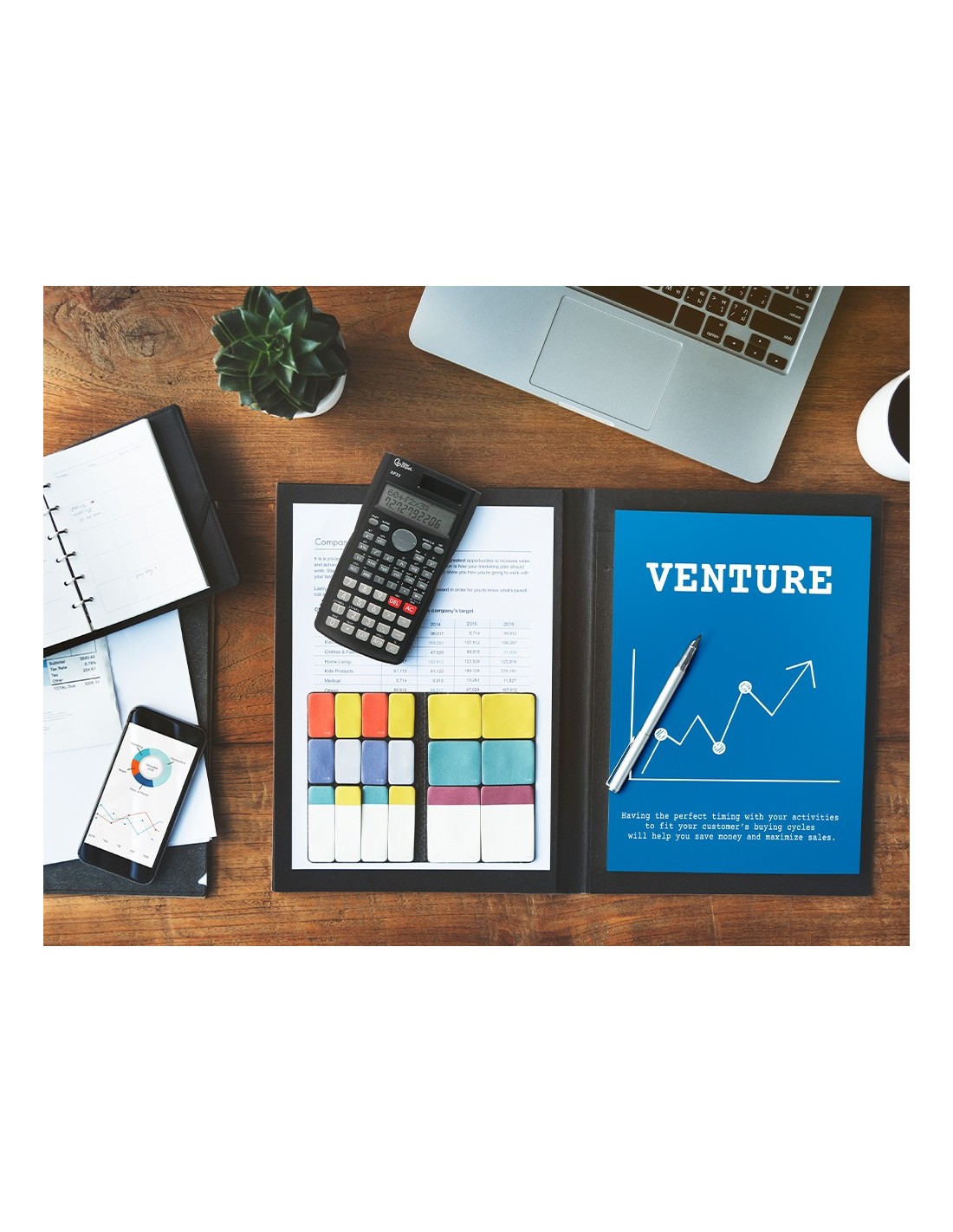 Calculadora científica de 12 dígitos con pantalla de 2 líneas de lectura. Visualización de expresión y resultado de manera simultánea. 240 funciones integradas. Funciones trigonométricas, parabólicas e hiperbólicas. Cálculo automático de quebrados y tecla de cursor extragrande para desplazarse por los menús. Memoria para almacenar las variables, cómputos en grado centesimal, sexagesimal y medida de arco. Conversión mutua entre sistemas decimal y sexagesimal. Generador de valores aleatorios, porcentajes, fracciones, combinaciones, permutaciones. Cómodo sistema de menú para cálculos estadísticos. Con tapa rígida. Usa una pila LR44. Medidas: 156 x 85 x 20 mm. Peso: 170 g.