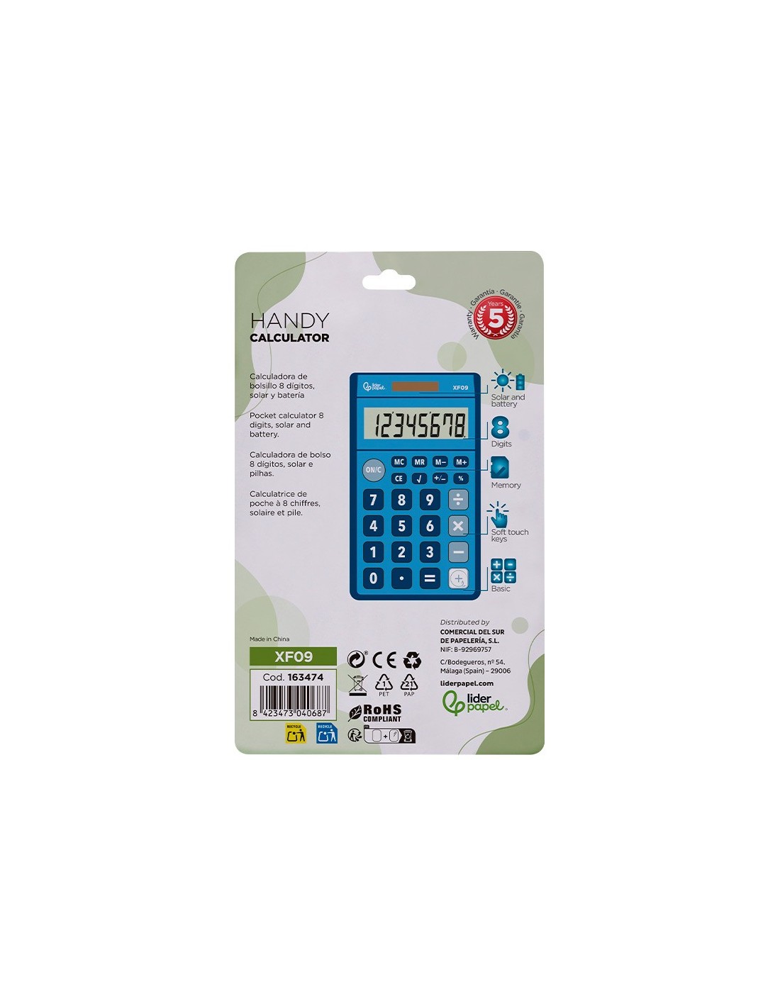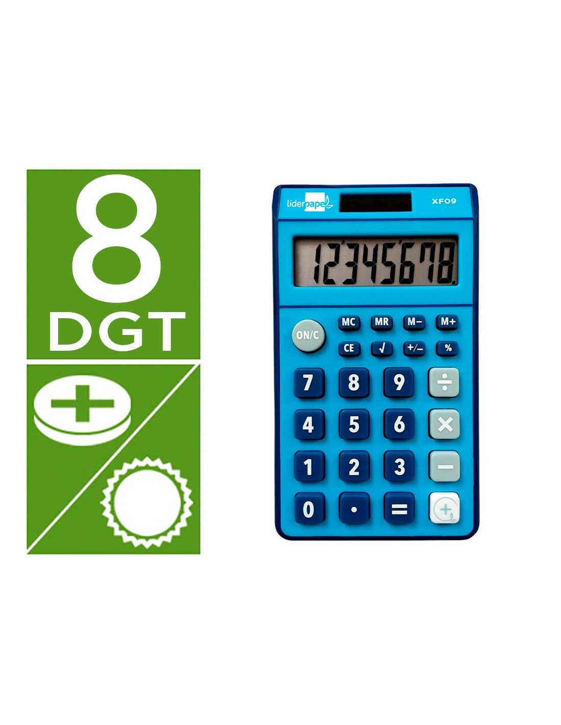 CALCULADORA BOLSILLO XF09 8D.SOLAR PILAS AZ. 115X65X8MM