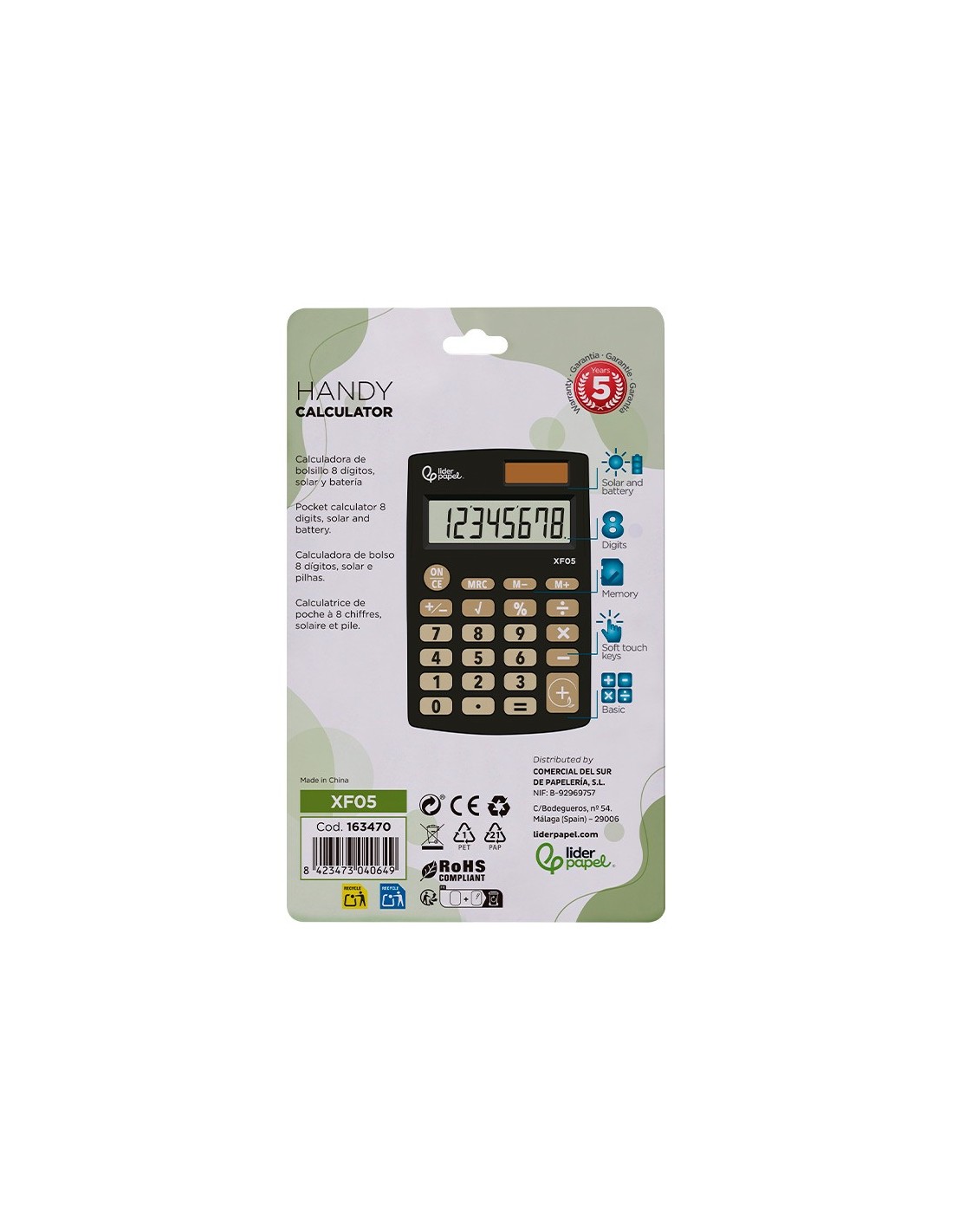 CALCULADORA BOLSILLO XF05 8D.SOLAR PILAS NG.98X62X8MM