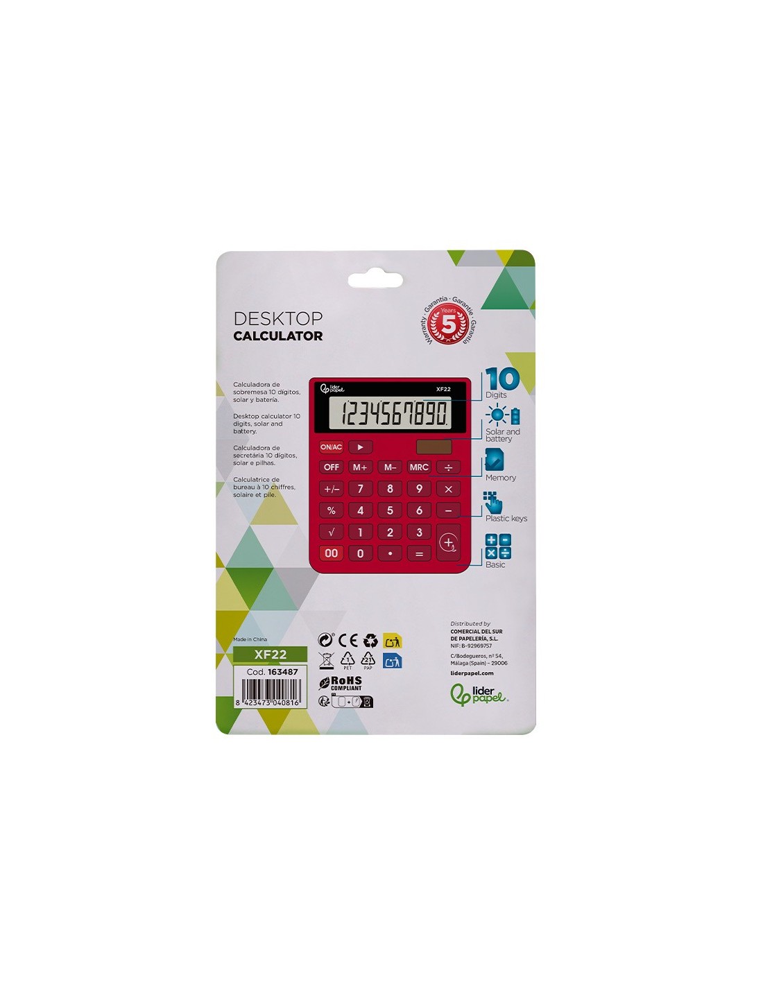 CALCULADORA XF22 10D.SOLAR PILAS RJ. 127X105X24MM