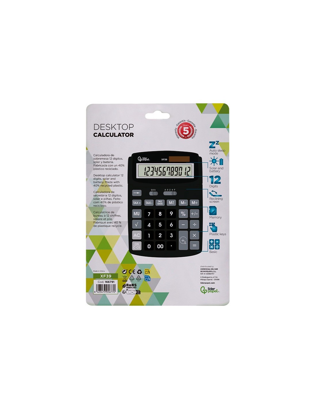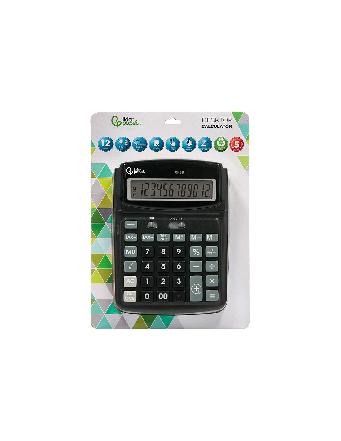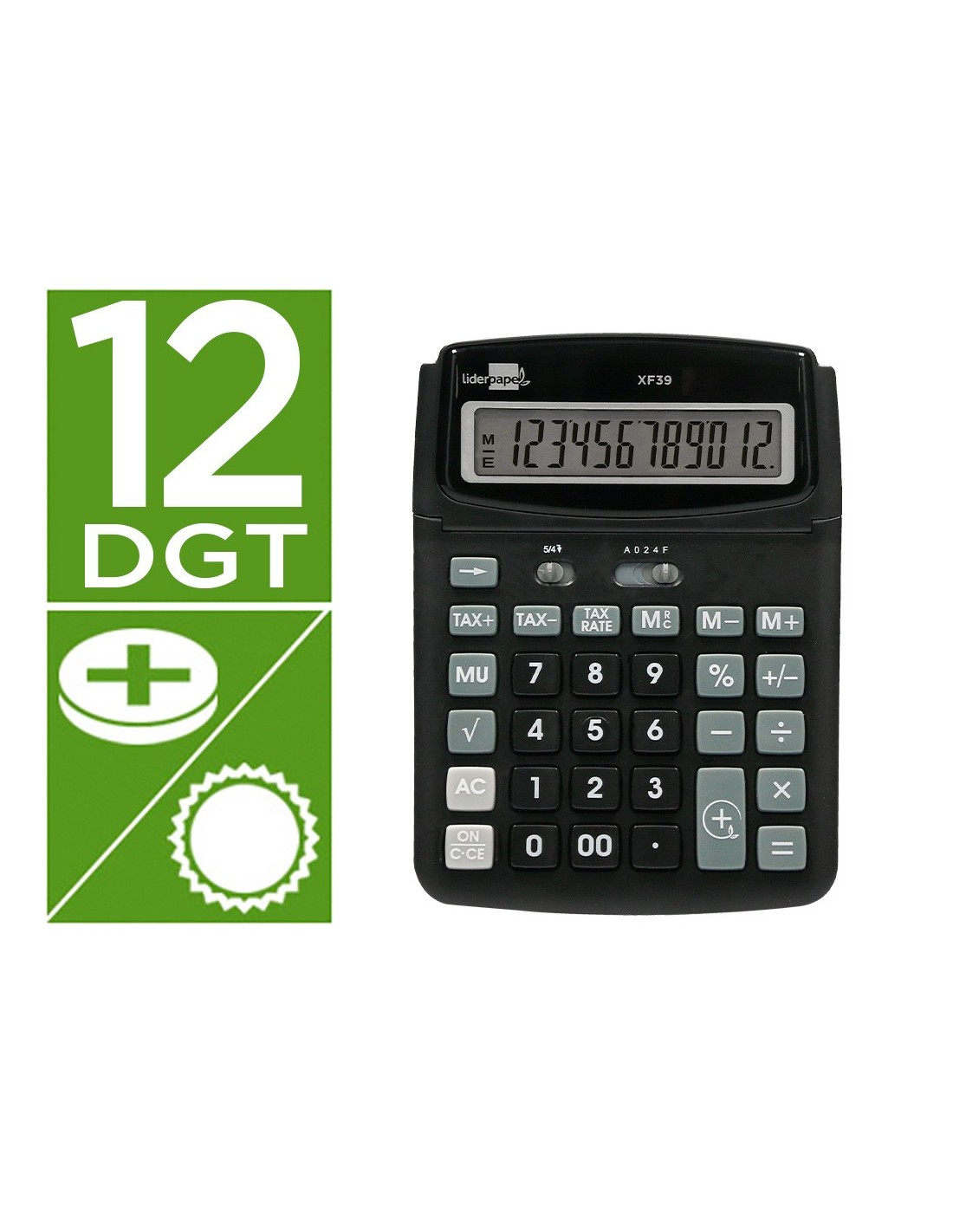 CALCULADORA LIDERPAPEL SOBREMESA XF39 12 DIGITOS SOLAR Y PILAS RECIC