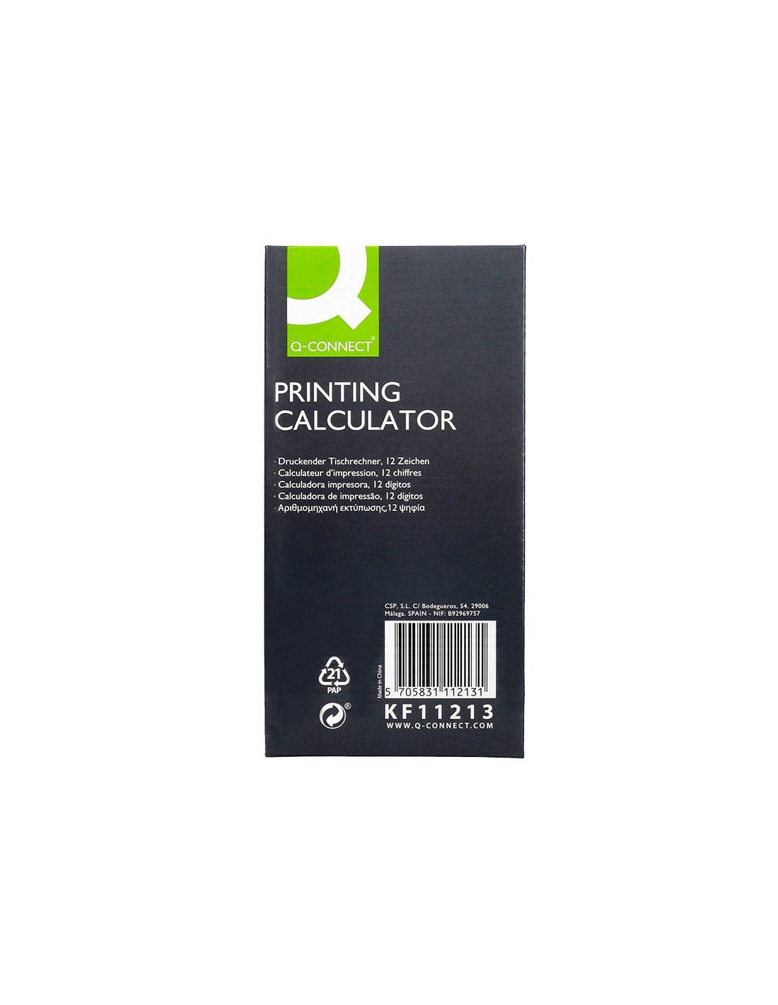 CALCULADORA Q-CON.IMPRESORA PANTALLA PAPEL KF11213 12 DIGITOS NEGRA