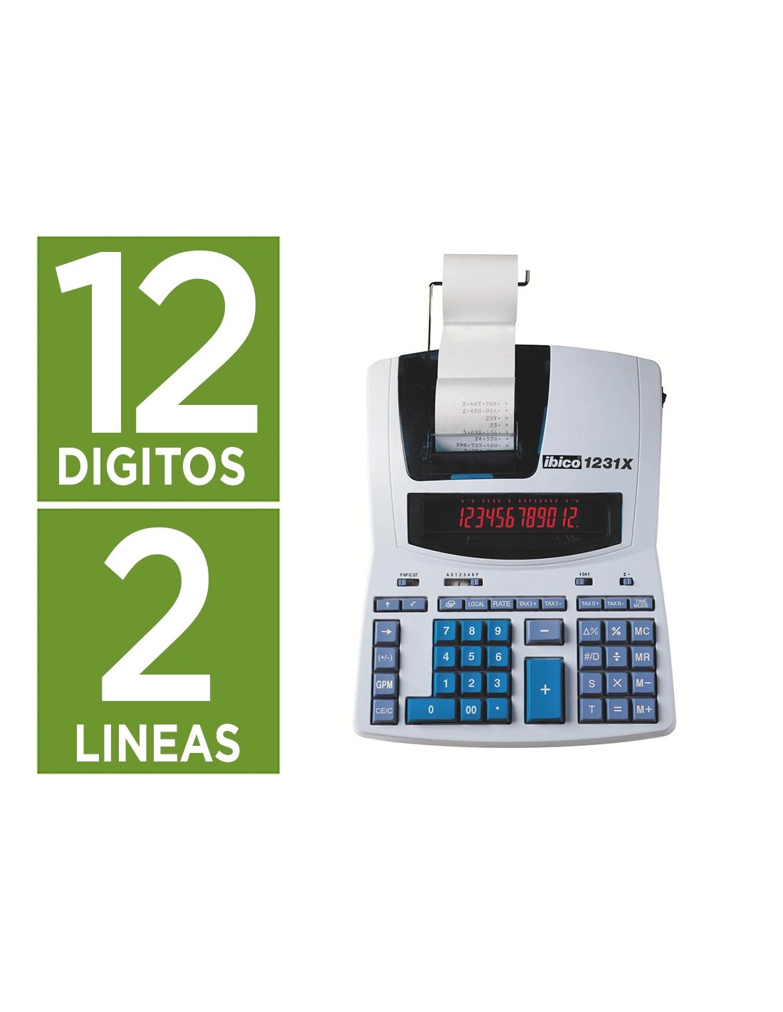 CALCULADORA IBICO 1231X LCD PAPEL 57MM 12D.2 IMP. BICOLOR BL./AZUL