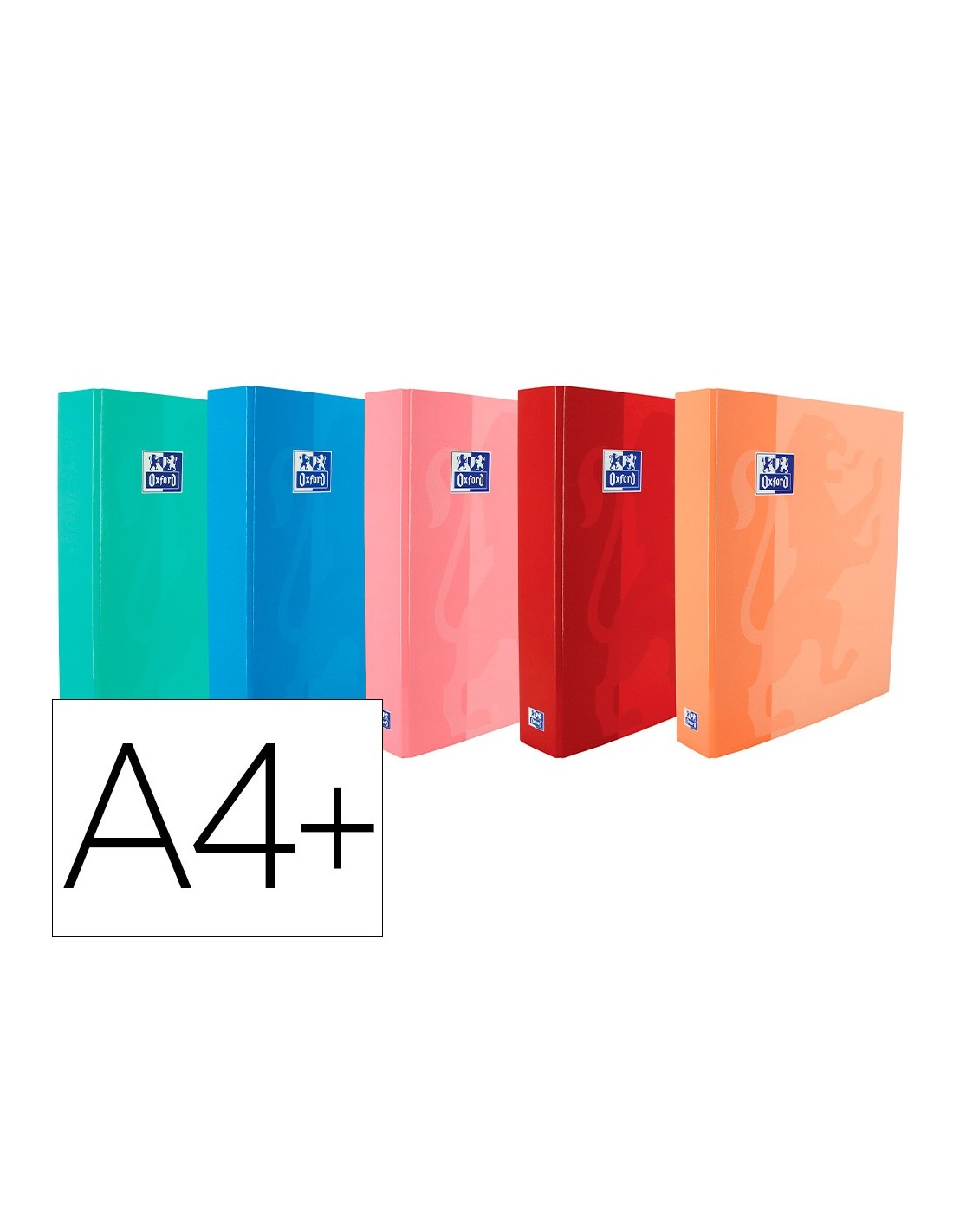 Carpeta de anillas con tapa extradura. 4 anillas de 40 mm. Formato DIN A4+. Colores tendencia surtidos.