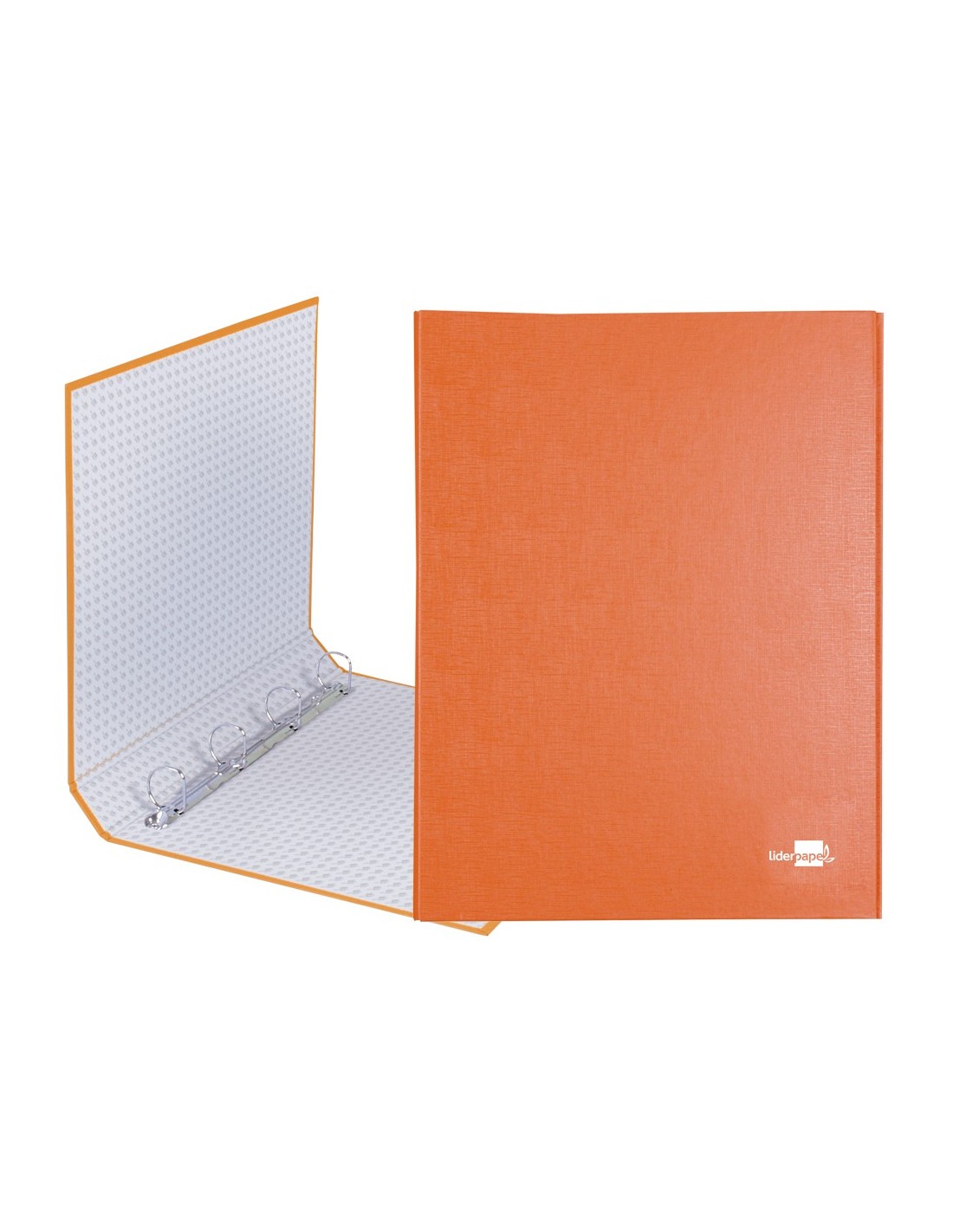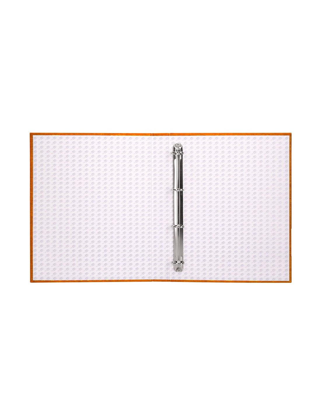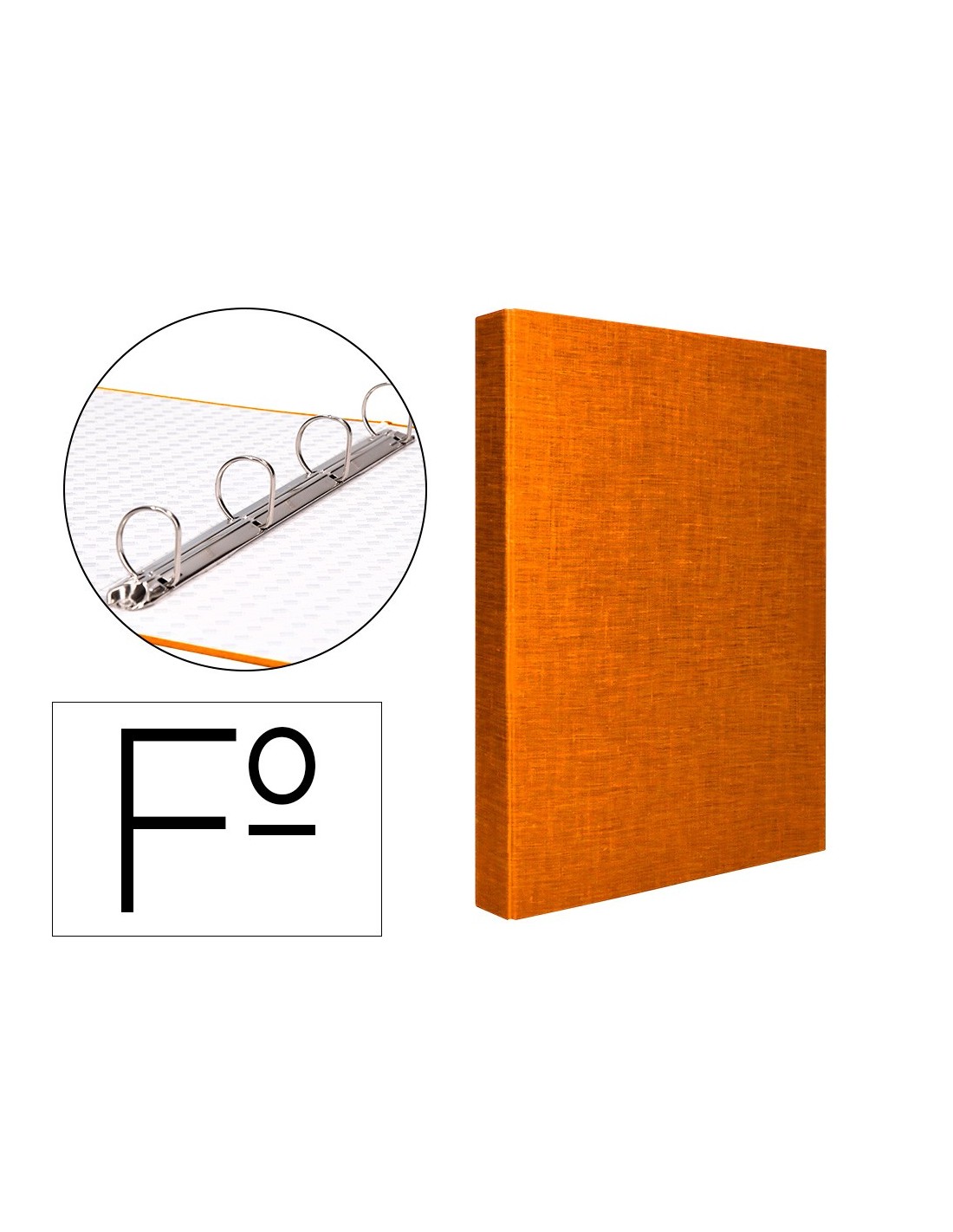 Carpeta cartón entrecolado de 1,75 mm de espesor, forrado con papel de encuadernación plastificado, gofrado tela en PVC. Con anillas mixtas. Tamaño folio. Medidas: 260 x 332 mm.