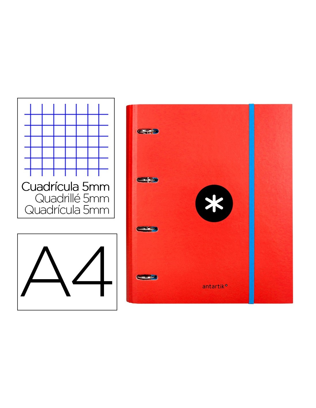 CARPETA RECAMBIO Y SOLAPA ANTARTIK A4 CUADRO 5MM FORR.4A.RED.40MM RJ.