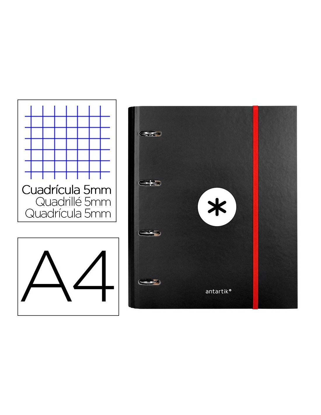 CARPETA RECAMBIO Y SOLAPA ANTARTIK A4 CUADRO 5MM FORR.4A.RED.40MM NG.