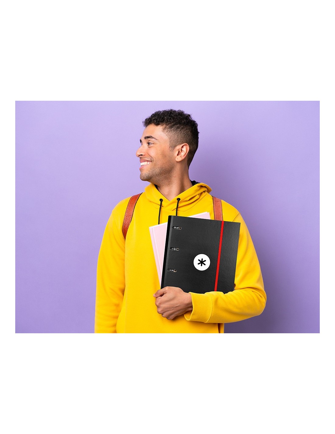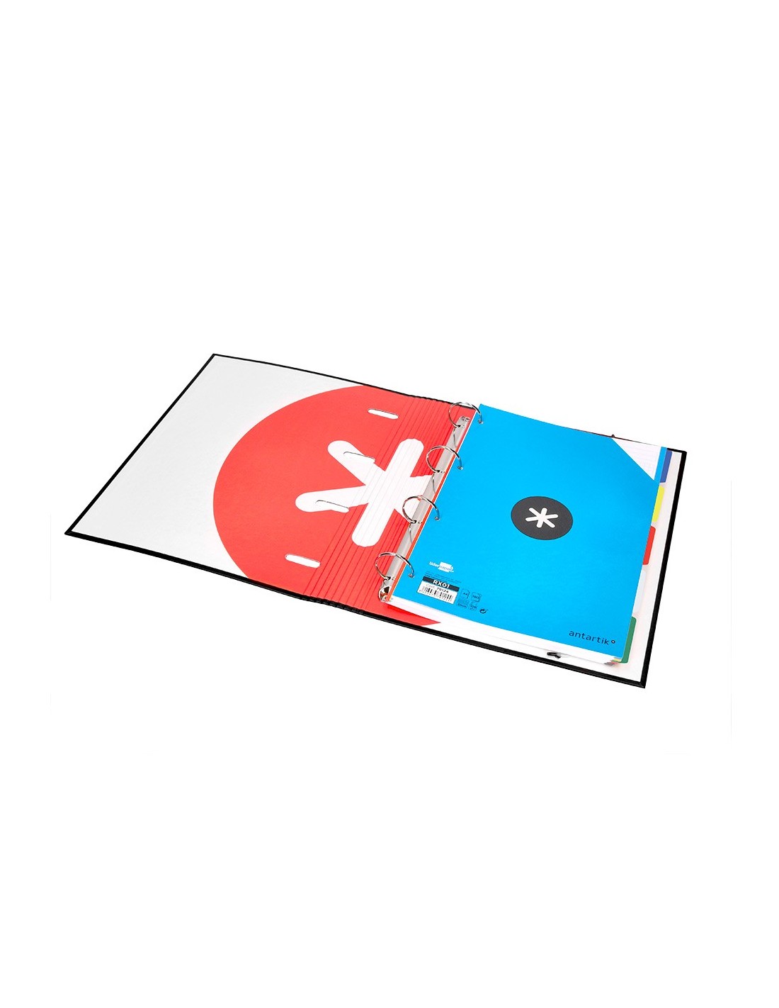 TAPA DE CARTÓN FORRADO DE 1,75 MM DE ESPESOR. FORRADA EN PAPEL ESTUCADO MATE DE 135 G/M² IMPRESO. PLASTIFICADA MATE CON DETALLES BARNIZ UVI. 4 ANILLAS REDONDAS. CIERRE DE GOMILLA. CON RANURAS PARA ANILLAS. 100 HOJAS CON 5 BANDAS DE COLOR Y 4 TALADROS. PAPEL INTERIOR EXTRABLANCO DE 90 G/M². ULTR ASUAVE. CUADRÍCULA DE 5 MM. FORMATO DIN A4. GUARDA INTERIOR IMPRESA. LOMO REDONDO, CON SEPARADOR INTERIOR Y SOLAPA.