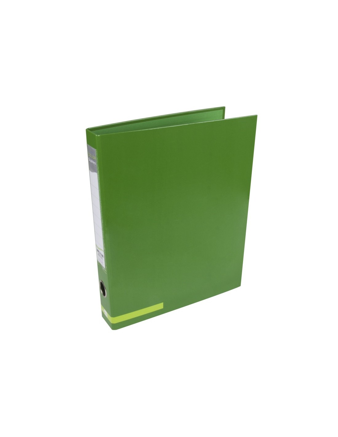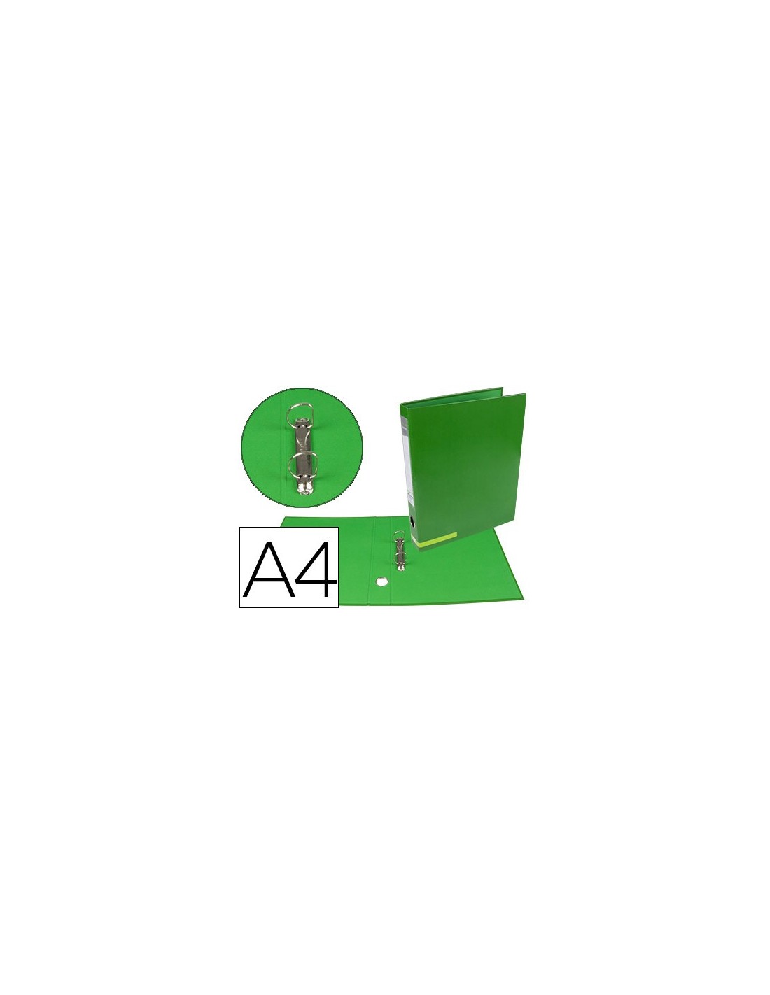 Carpeta fabricada en cartón forrado de 1,75 mm de espesor. Papel estucado brillo de 115 g/m². Ollao y tarjetero. Con 2 anillas mixtas de 25 mm. Formato DIN A4. Ancho de lomo: 45 mm.