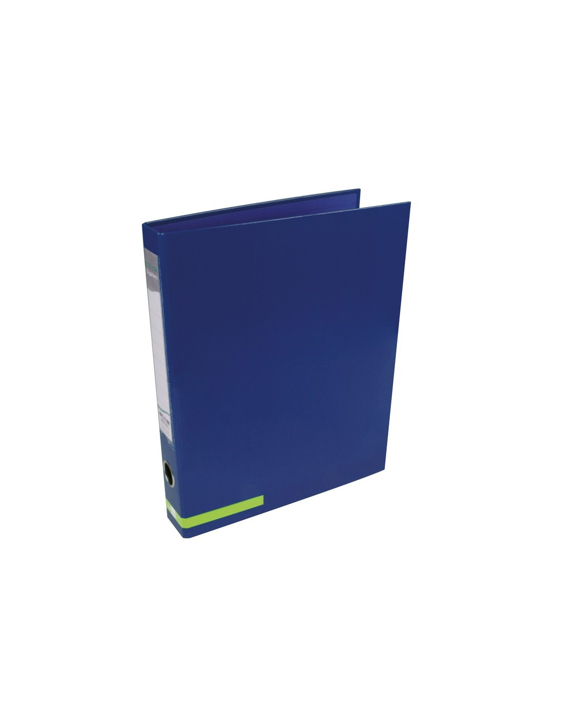 Carpeta fabricada en cartón forrado de 1,75 mm de espesor. Papel estucado brillo de 115 g/m². Ollao y tarjetero. Con 2 anillas mixtas de 25 mm. Formato DIN A4. Ancho de lomo: 45 mm.