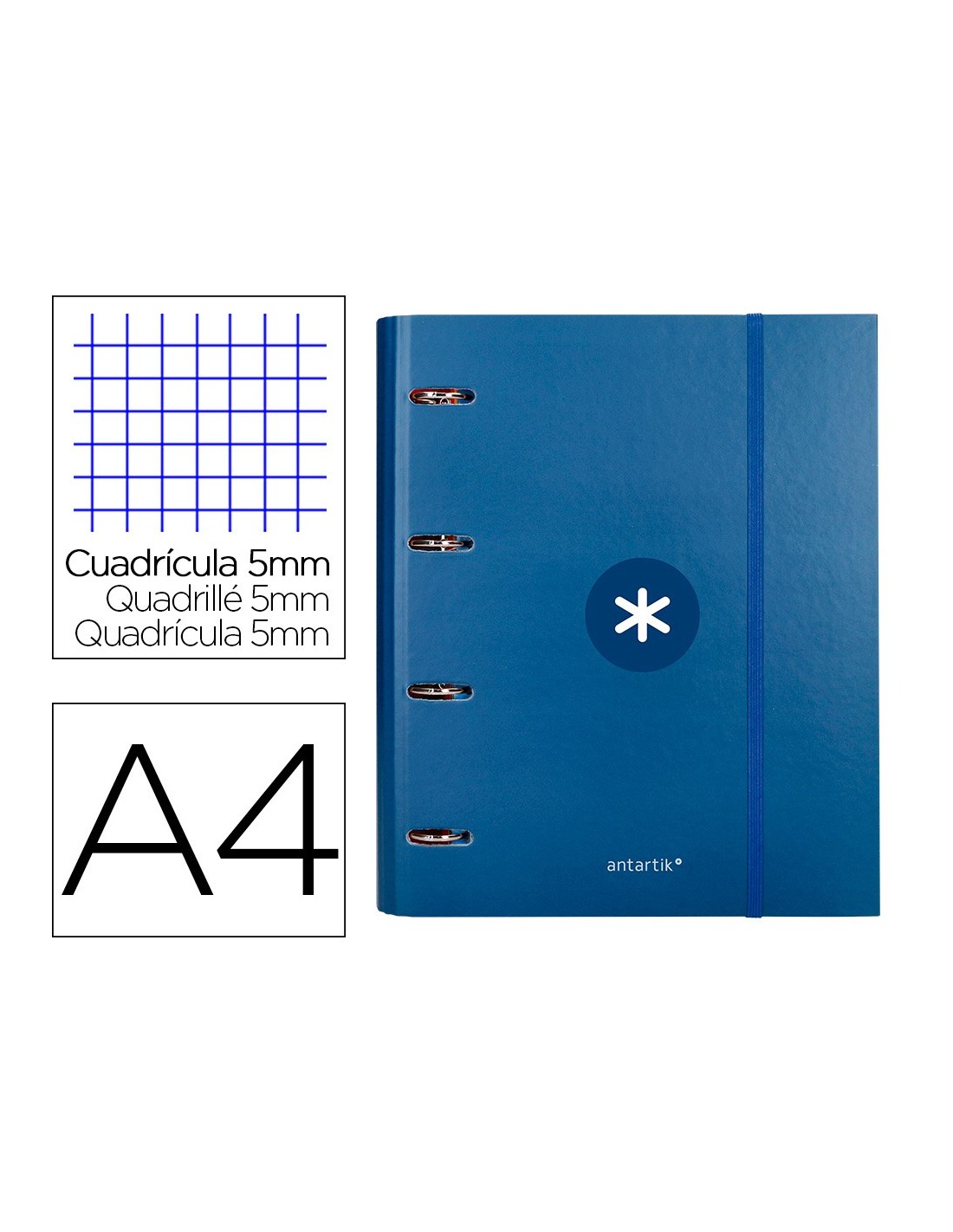 CARPETA RECAMBIO ANTARTIK A4 5MM FORRADA 4AN.REDONDAS 40MM AZ.