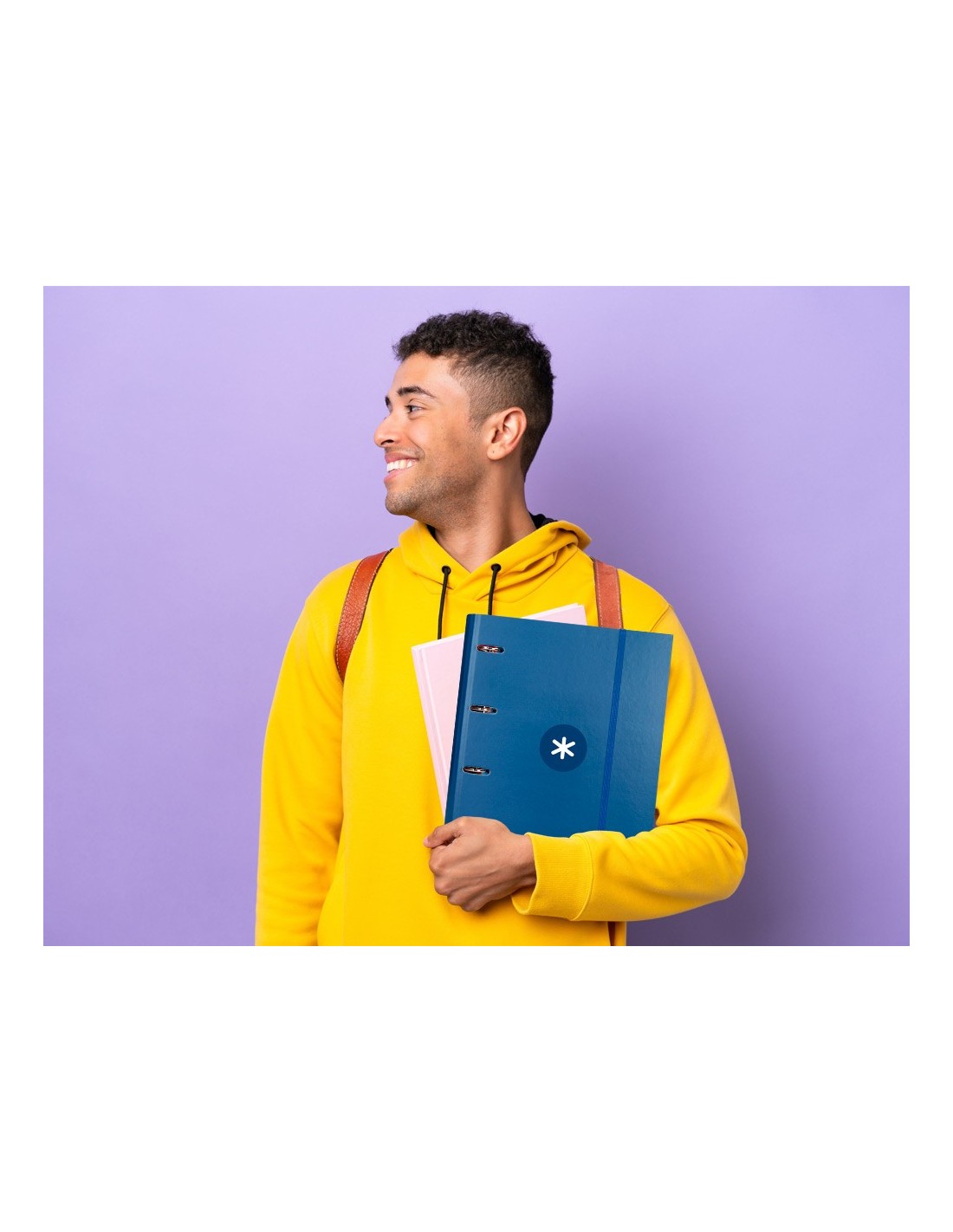 TAPA DE CARTÓN FORRADO DE 1,75 MM DE ESPESOR. FORRADA EN PAPEL ESTUCADO MATE DE 135 G/M² IMPRESO. PLASTIFICADA MATE CON DETALLES BARNIZ UVI. 4 ANILLAS REDONDAS. CIERRE DE GOMILLA. CON RANURAS PARA ANILLAS. 100 HOJAS CON 5 BANDAS DE COLOR Y 4 TALADROS. PAPEL INTERIOR EXTRABLANCO DE 90 G/M². ULTR ASUAVE. CUADRÍCULA DE 5 MM. FORMATO DIN A4. GUARDA INTERIOR IMPRESA. LOMO REDONDO, CON SEPARADOR INTERIOR Y SOLAPA.