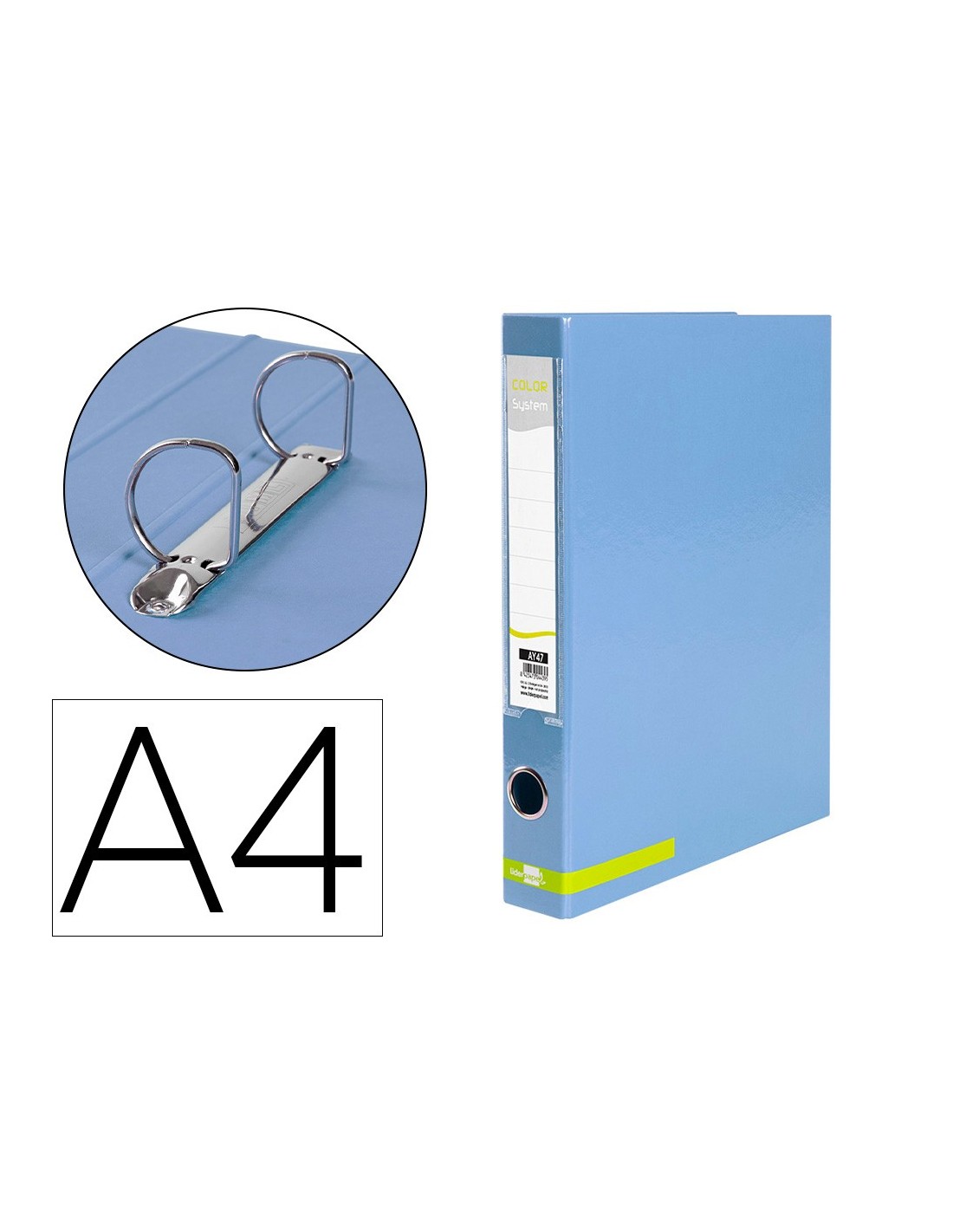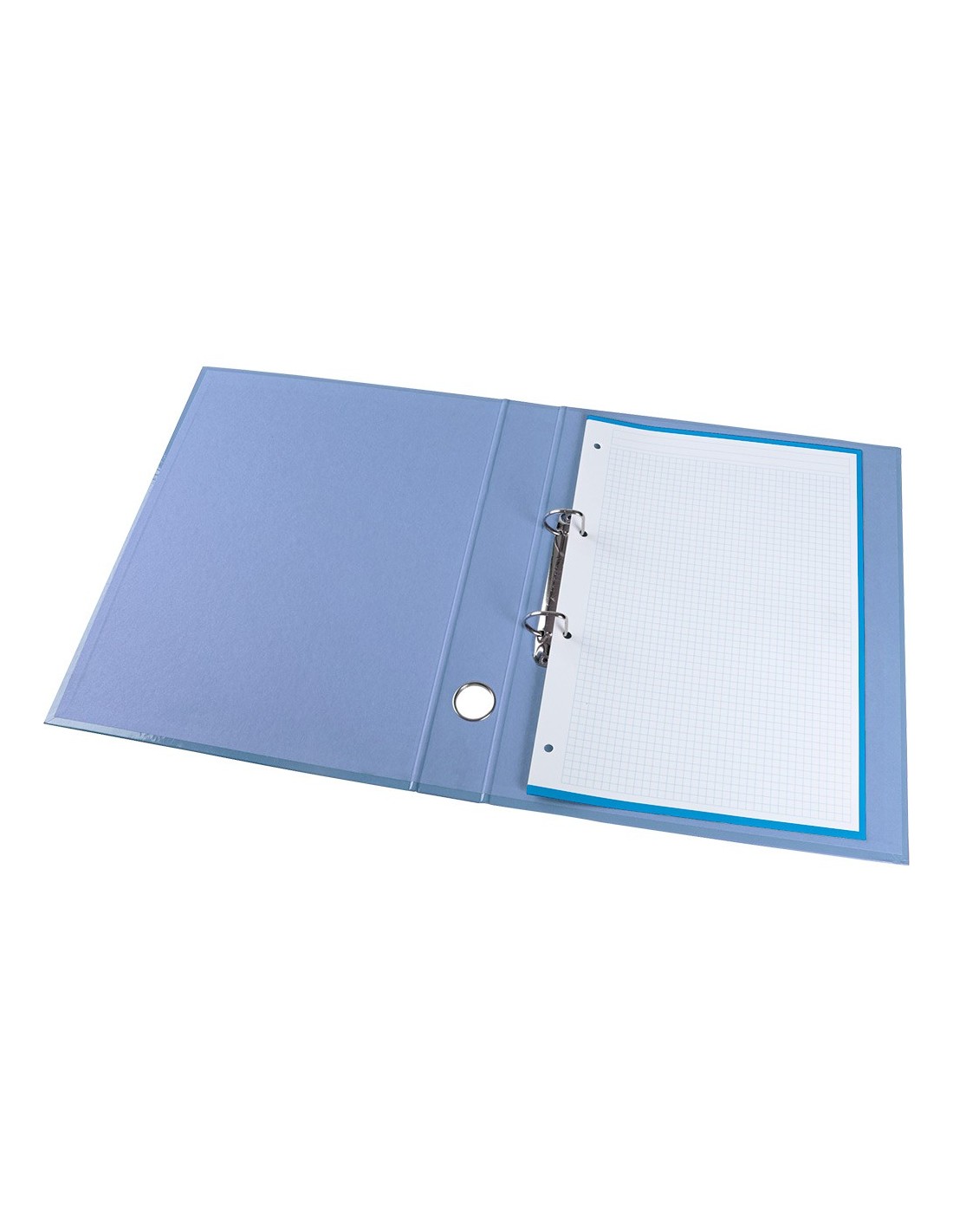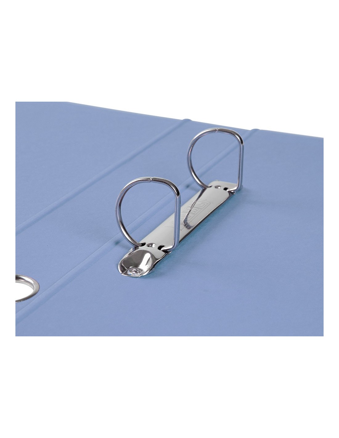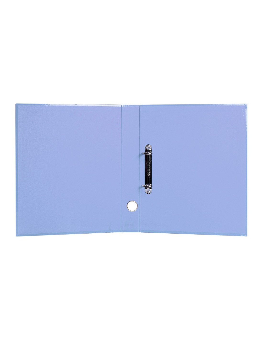 Carpeta fabricada en cartón forrado de 1,75 mm de espesor. Papel estucado brillo de 115 g/m². Ollao y tarjetero. Con 2 anillas mixtas de 25 mm. Formato DIN A4. Ancho de lomo: 45 mm. Colores pastel.