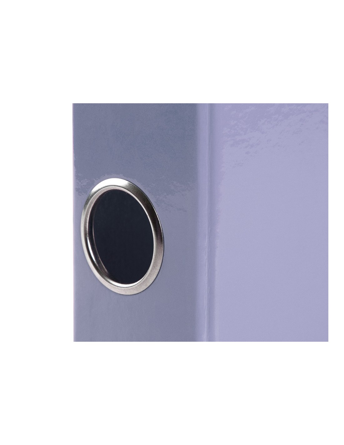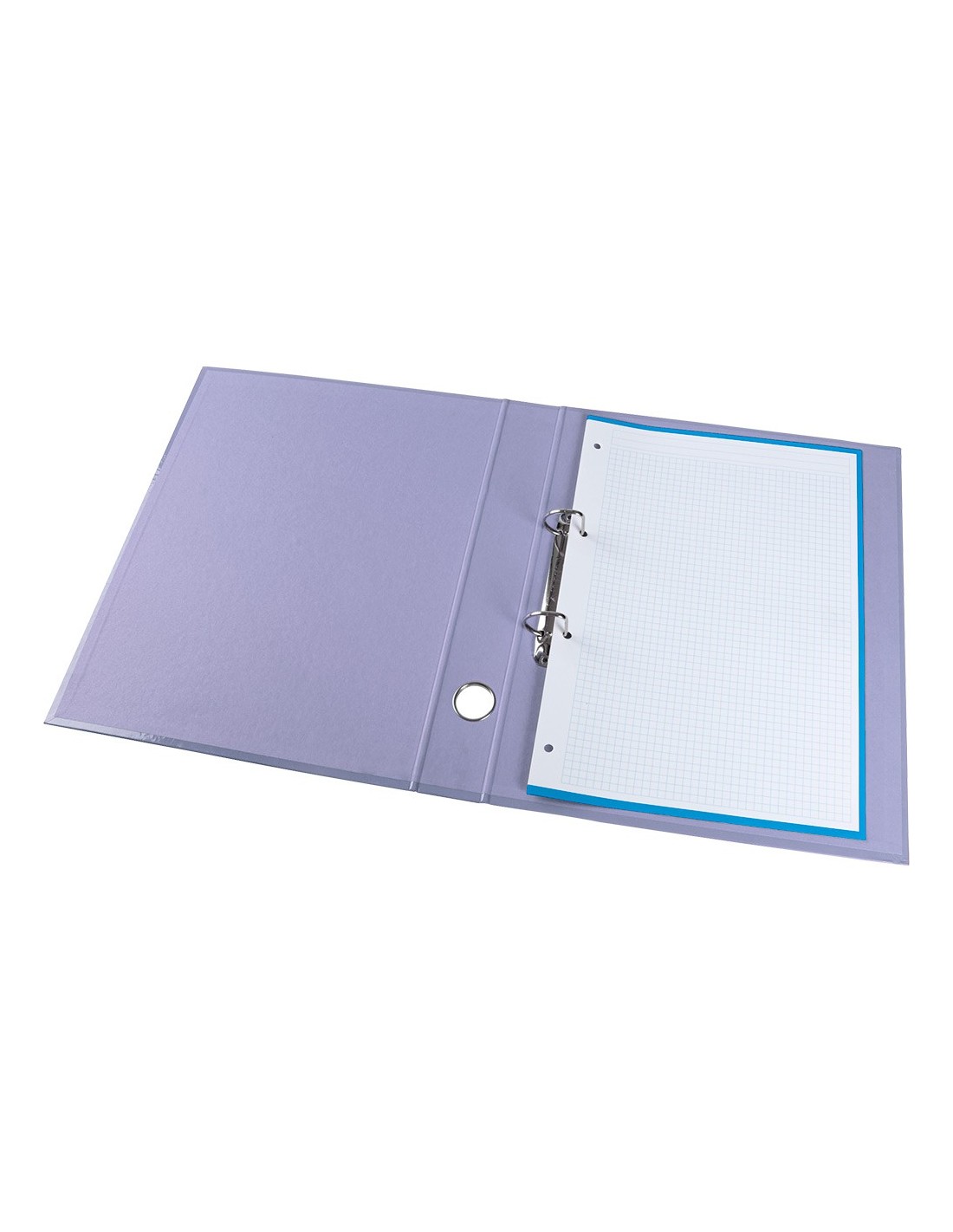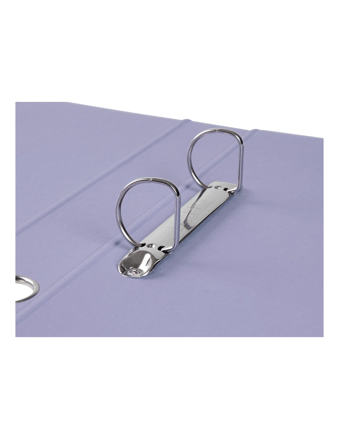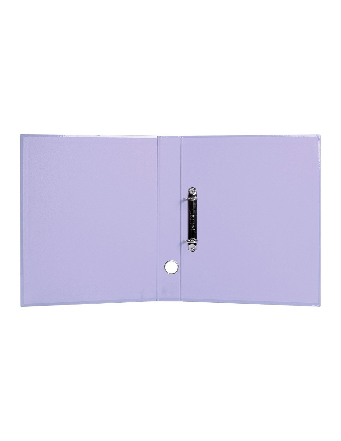 Carpeta fabricada en cartón forrado de 1,75 mm de espesor. Papel estucado brillo de 115 g/m². Ollao y tarjetero. Con 2 anillas mixtas de 25 mm. Formato DIN A4. Ancho de lomo: 45 mm. Colores pastel.