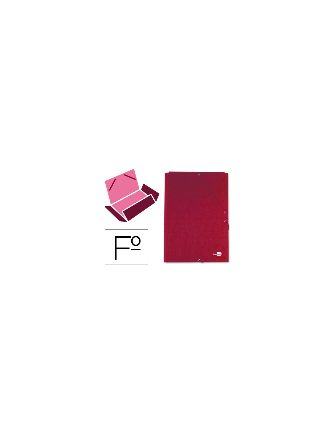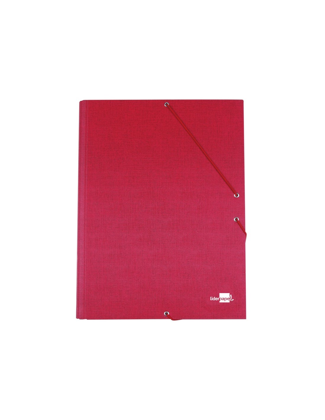 Fabricada en cartón entrecolado de 1,75 mm de espesor, forrado con papel de encuadernación plastificado, gofrado tela en PVC y guarda interior impresa. Cierre con gomas. Tres solapas. Tamaño folio.