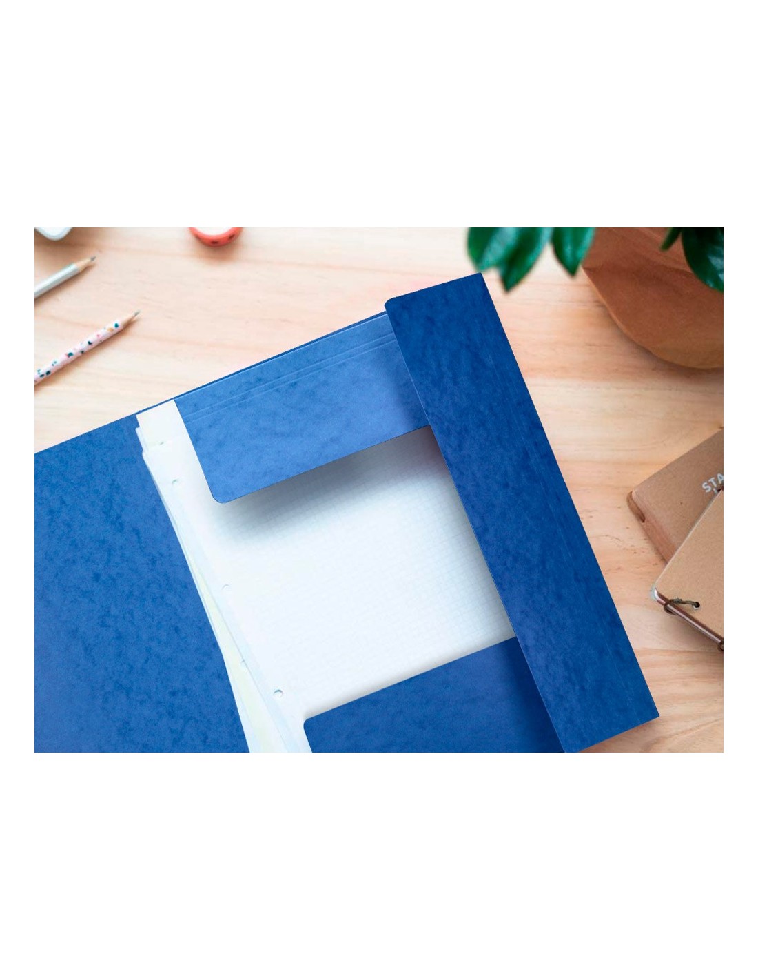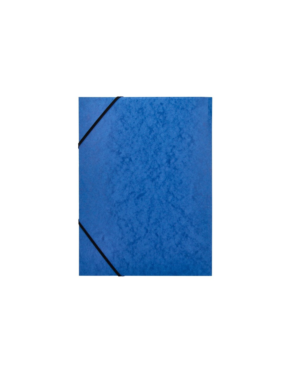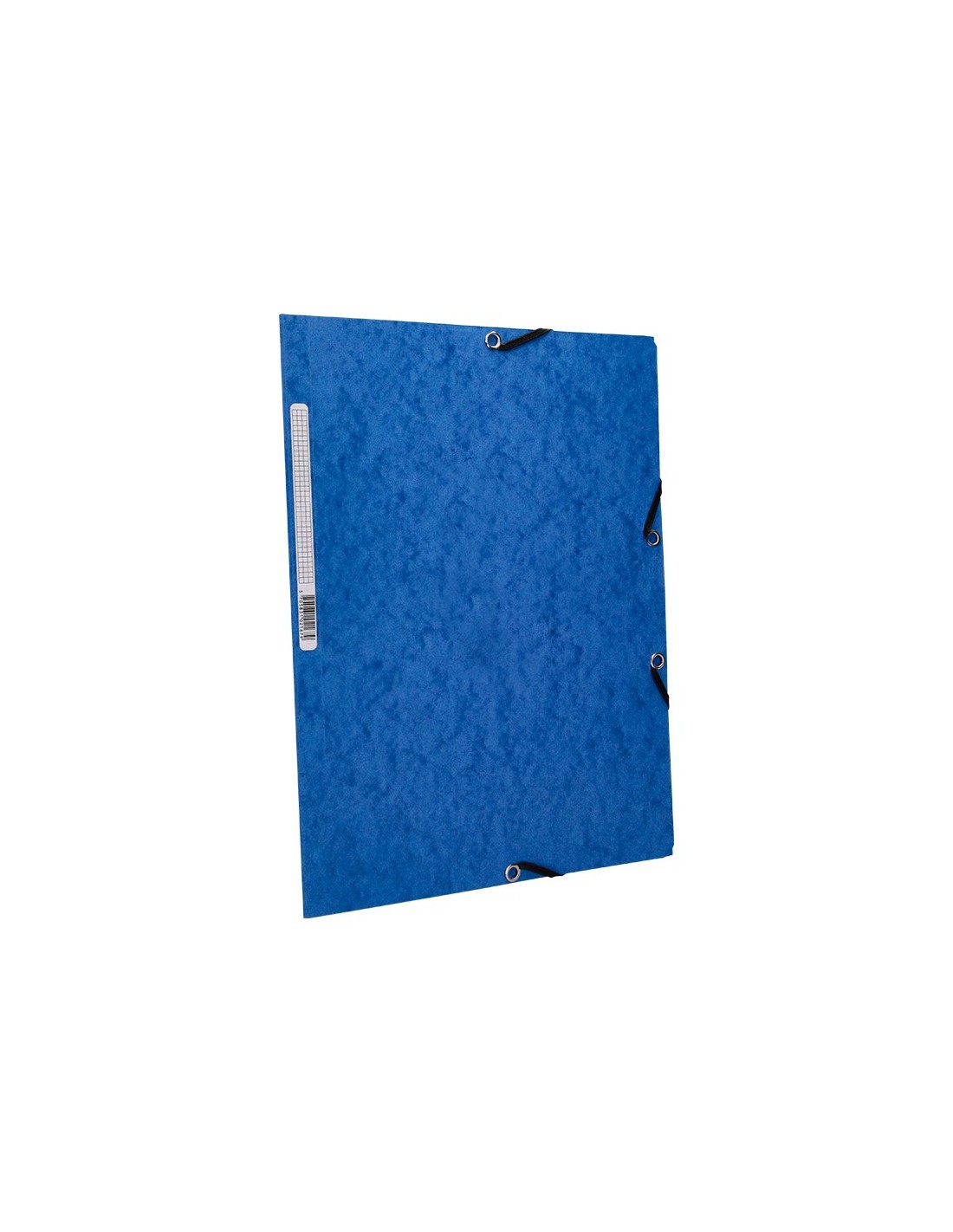 Carpeta de goma en símil prespán de 325 g/m². Cierre con elástico y tres solapas. Etiqueta adhesiva en el lomo. Formato DIN A4. Lomo de 15 mm.