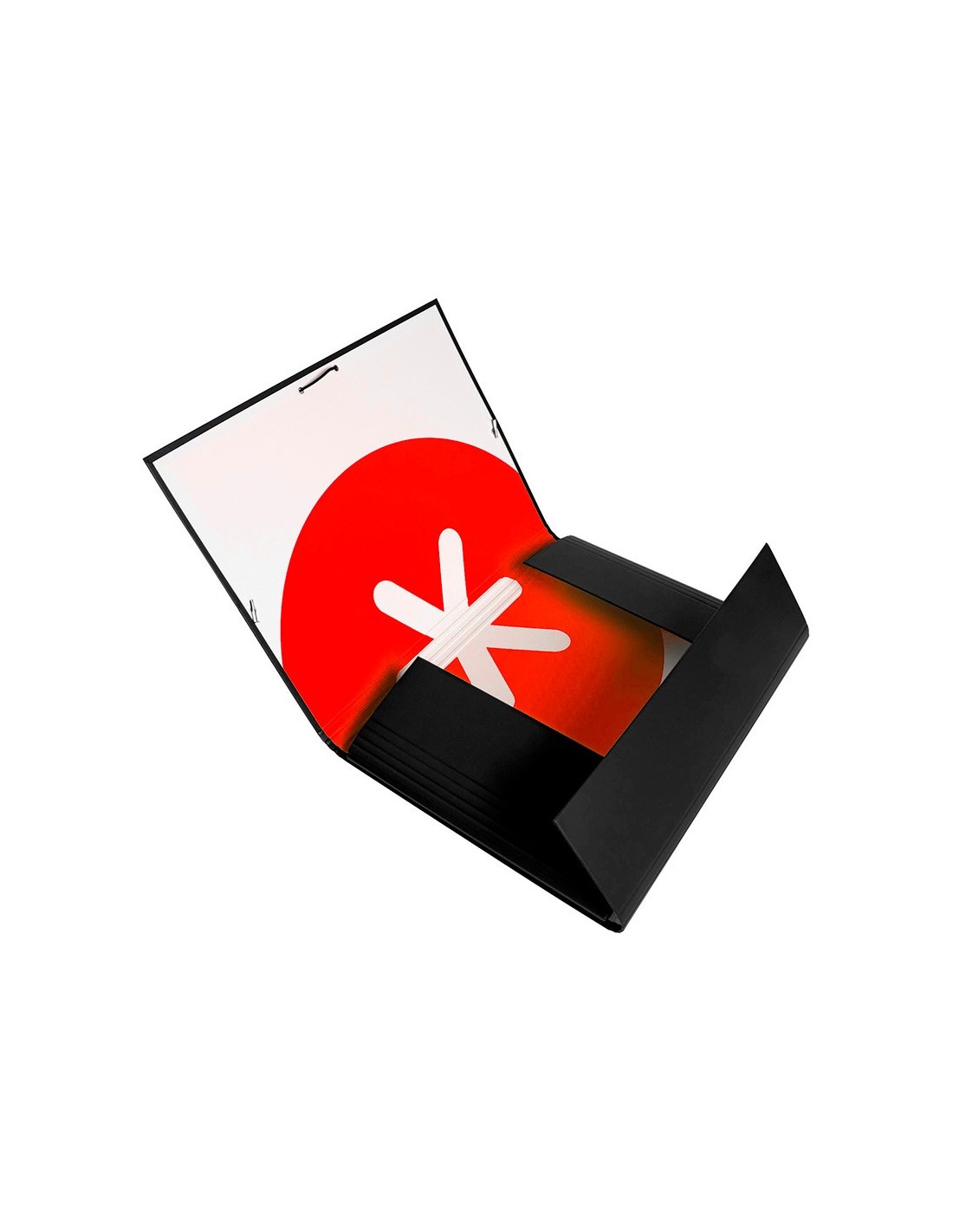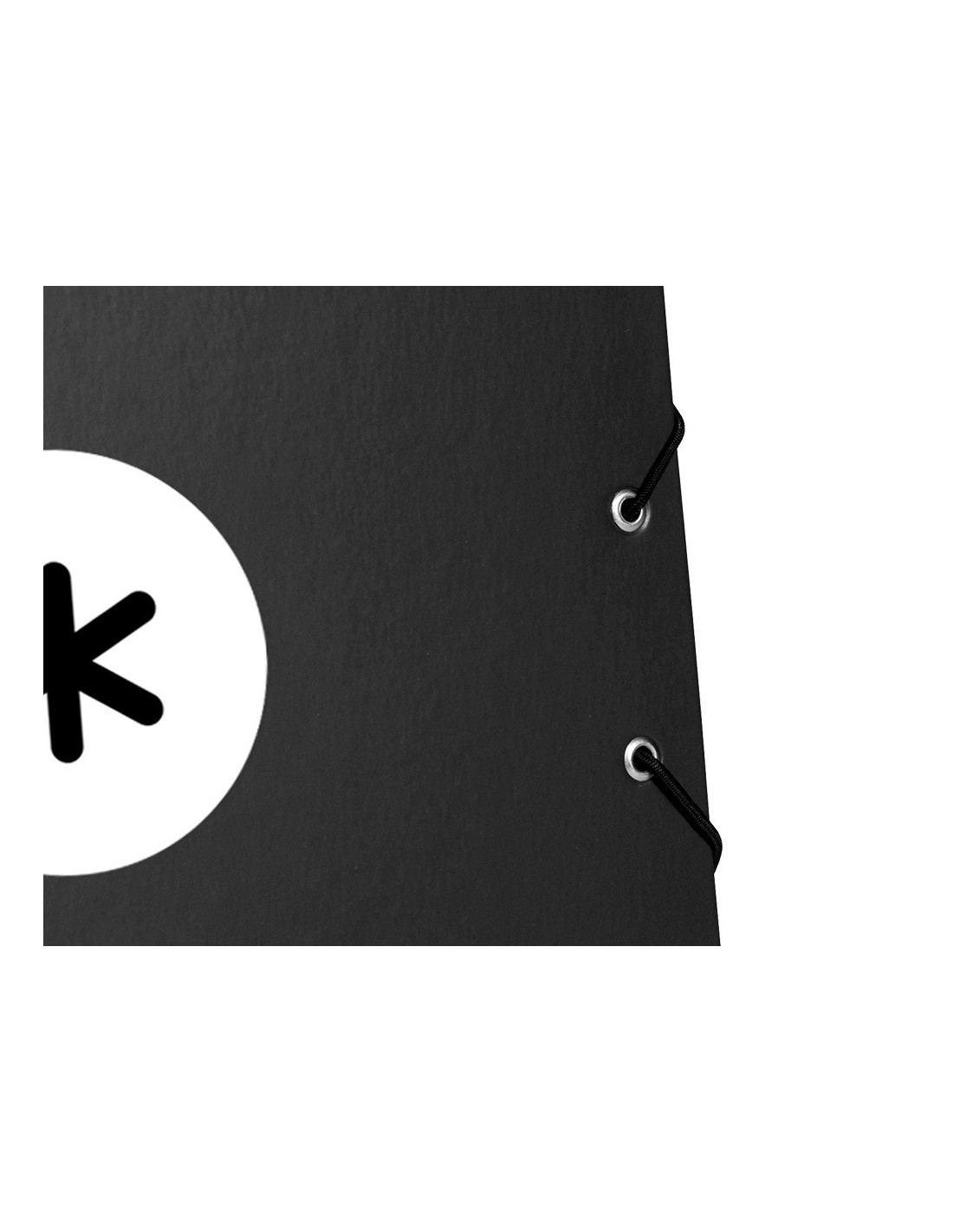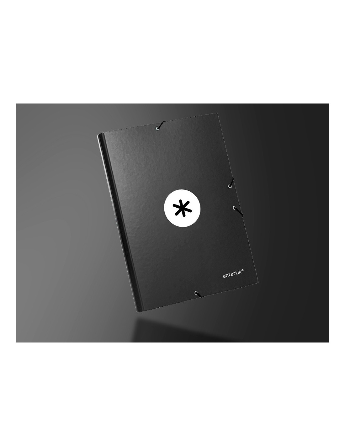 Carpeta de gomas fabricada en cartón forrado de 1,75 mm de espesor. Forrada en papel estucado mate de 135 g/m ²impreso. Plastificada mate con detalles en barniz UVI. Cierre con gomas. Tres solapas. Guarda interior impresa. Formato DIN A4.
